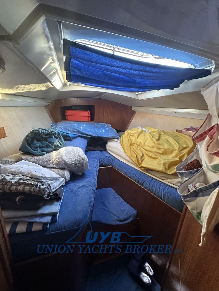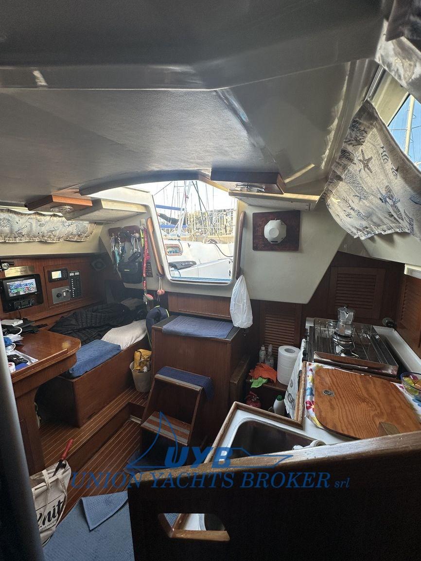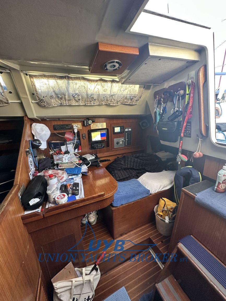2025 : remplacement des réservoirs d’eau, amorce + antifouling, remplacement de l’hélice Max Prop par 3 pales rabattables, nouvelles feuilles, remplacement des lignes de vie et vérification du gréement, auvent
