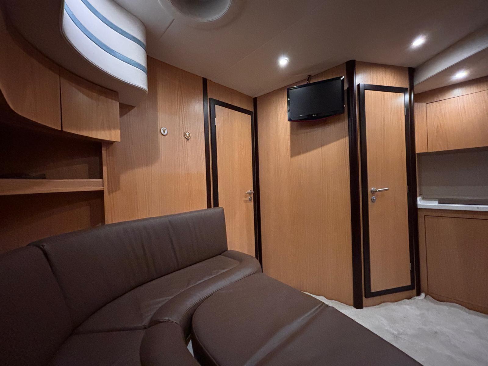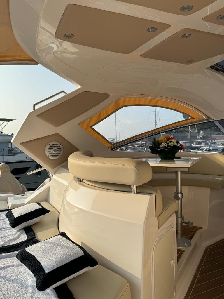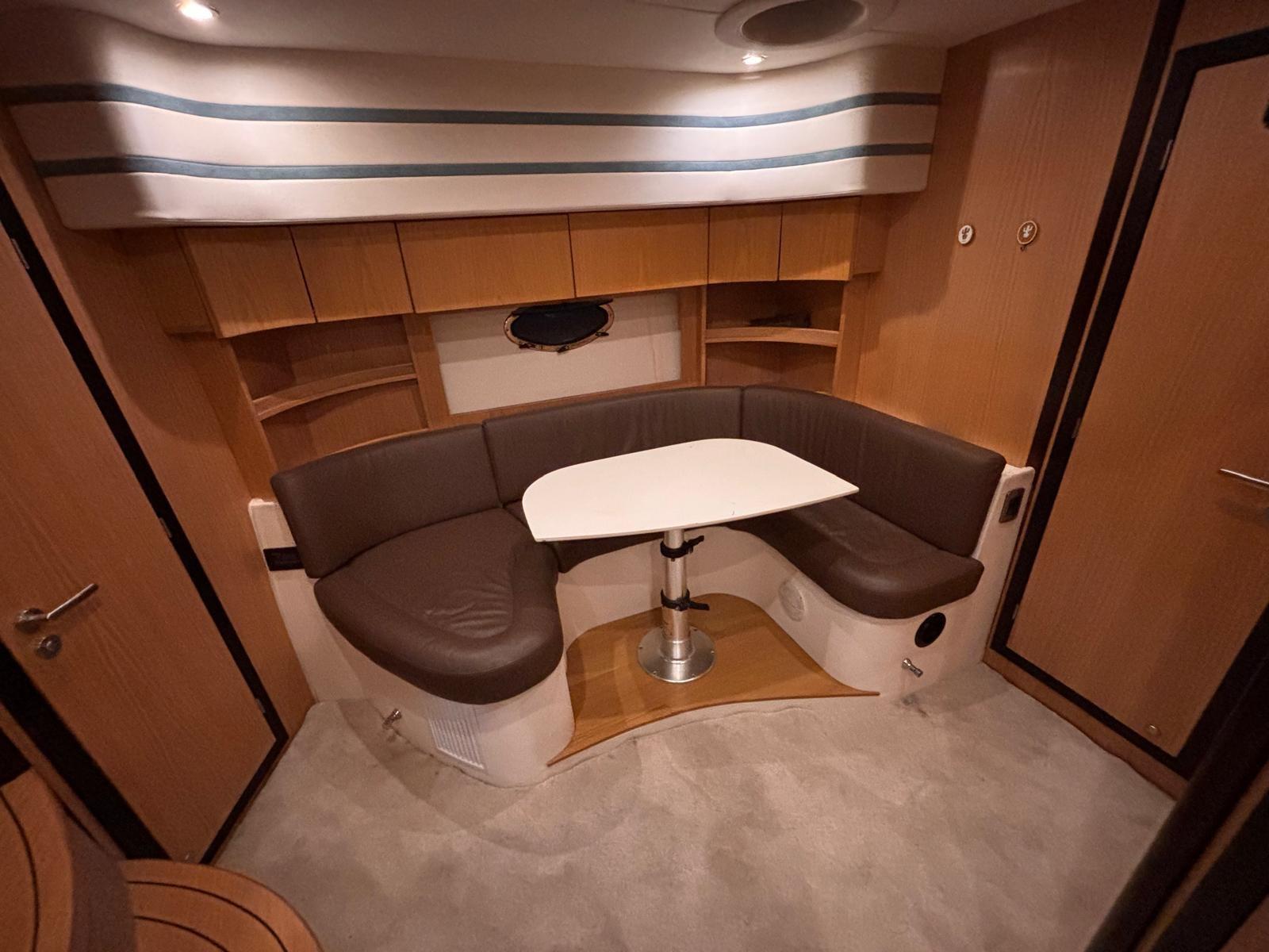 Accessoires : Compas, compteur de chaînes, écran, sondeur, pilote automatique, traceur, radio VHF, ancre et chaîne, batteries, chargeur de batterie, propulseur d’étrave, volets électriques, passerelle, pompe de cale électrique, prise 220v, guindeau électrique, échelle de bain, climatisation, chaîne stéréo et haut-parleurs, cuisine interne, cuisinière, réfrigérateur interne