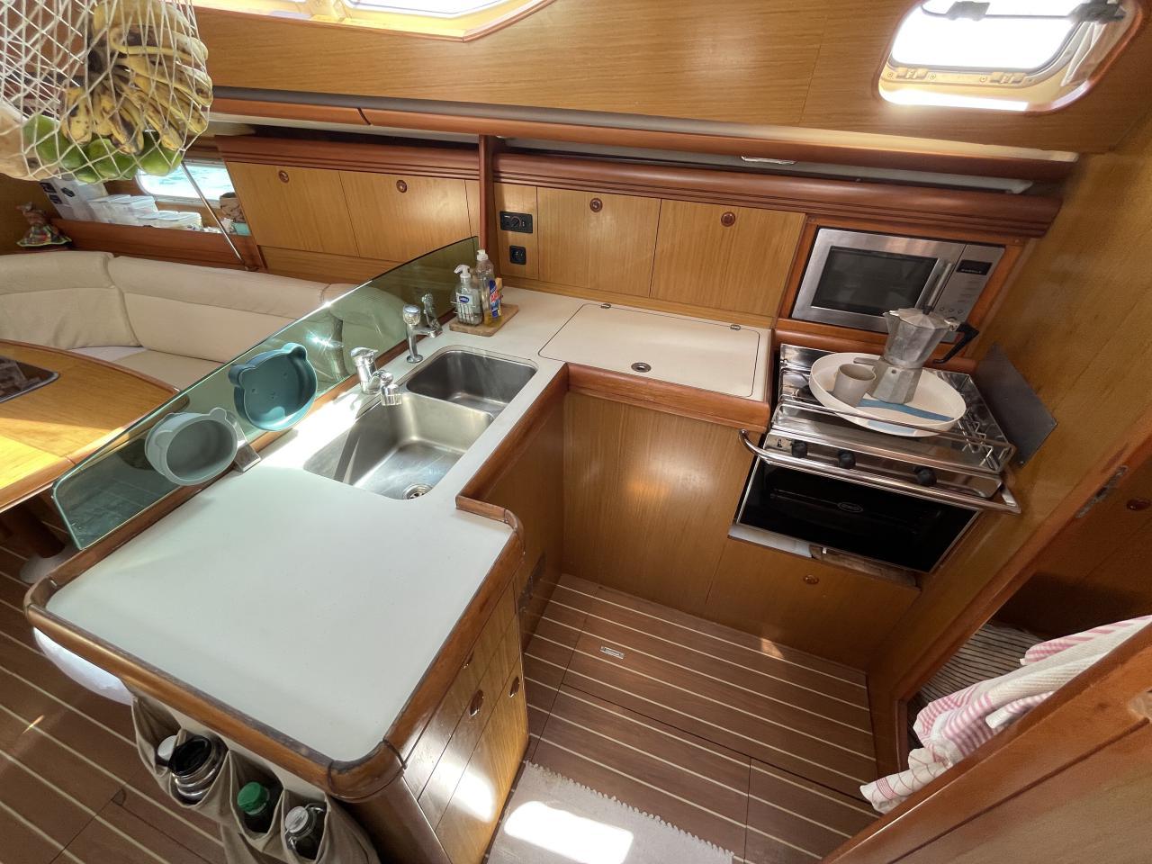 Cuisine équipé en L sur tribord
