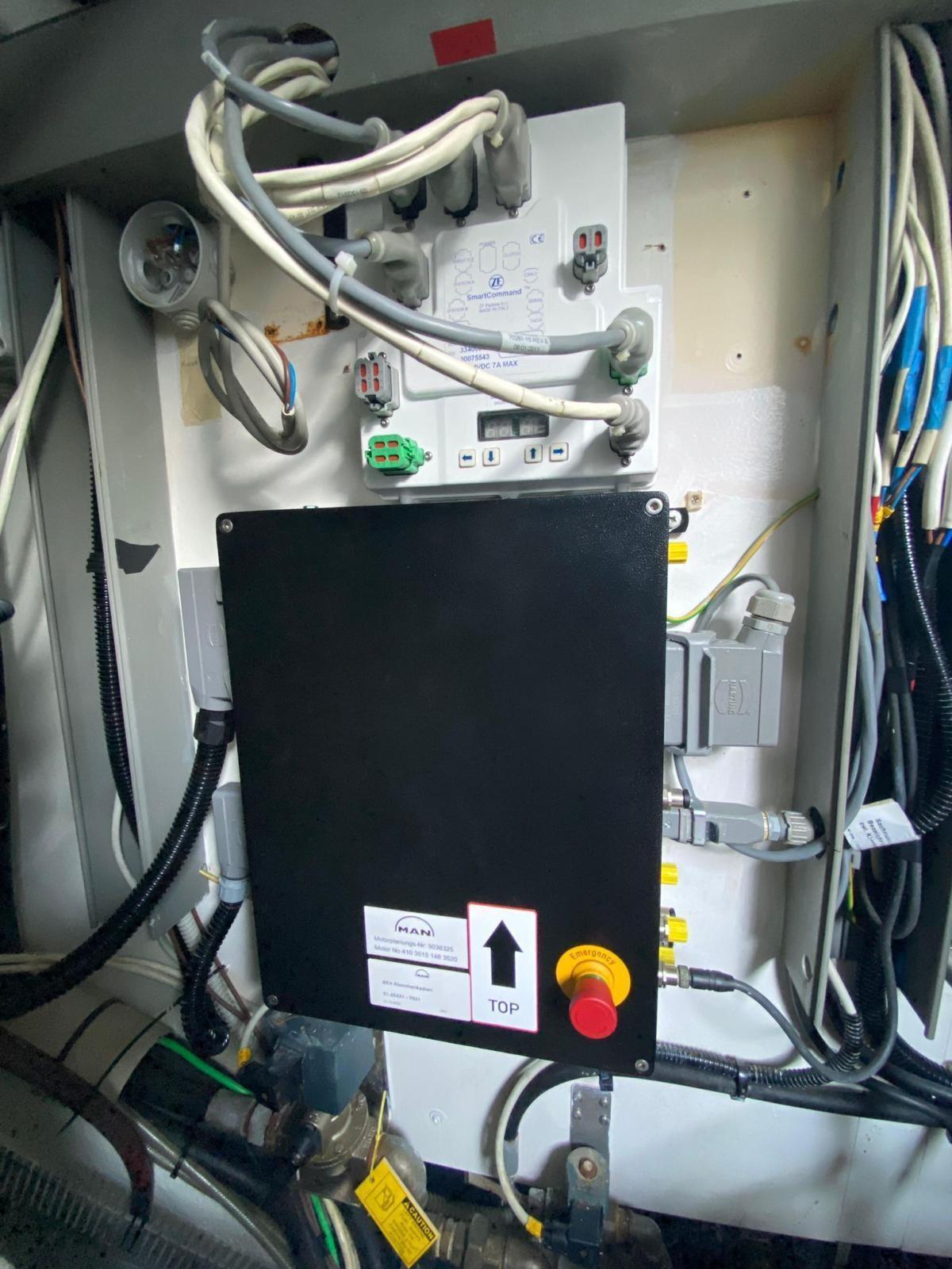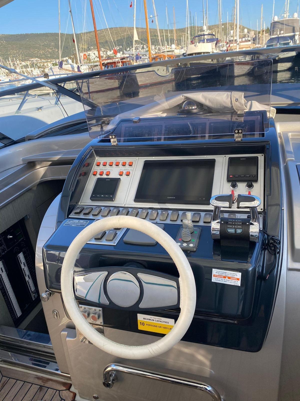 Alarme moteur, Flaps hydrauliques, Cockpit en teck, Prise de quai, Guindeau électrique, table de cockpit.