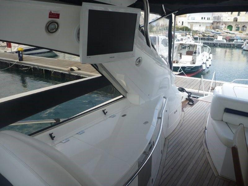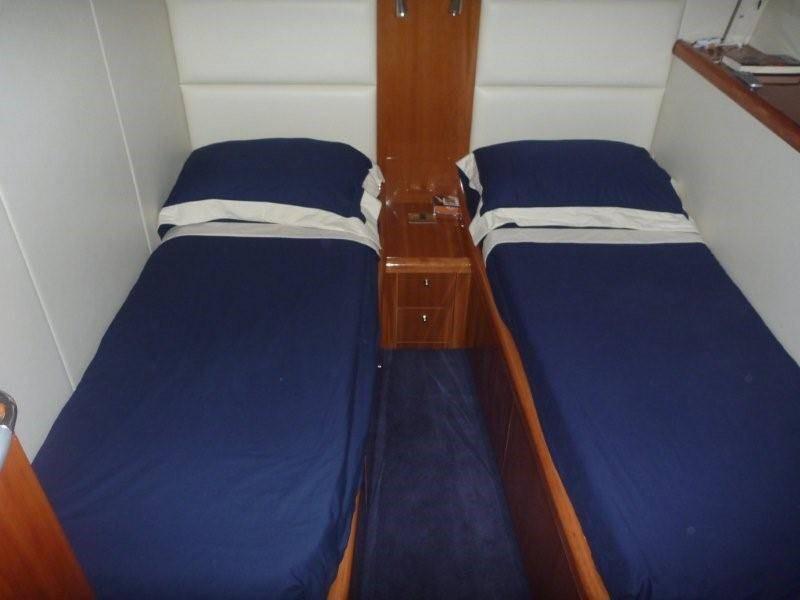 Alarme moteur, Alarme de pompe de cale, Eau sous pression, 8 Batteries, Couleur spéciale (BANDA SCAFO NERA), Douche de cockpit, Phare de poursuite, Flaps hydrauliques, Garage à annexe, Hard top, Indicateurs de flaps (DIGITALE), Éclairage de courtoisie, Passerelle (IDRAULICA A SCOMPARSA), Plateforme arrière, Pompe de cale automatique, Pompe de cale manuelle, Cockpit en teck, Prise de quai, Guindeau électrique, Echelle de bain, table de cockpit (A SCOMPARSA), Annexe, Corne, Winch électrique arrière.