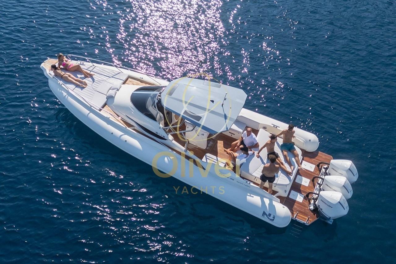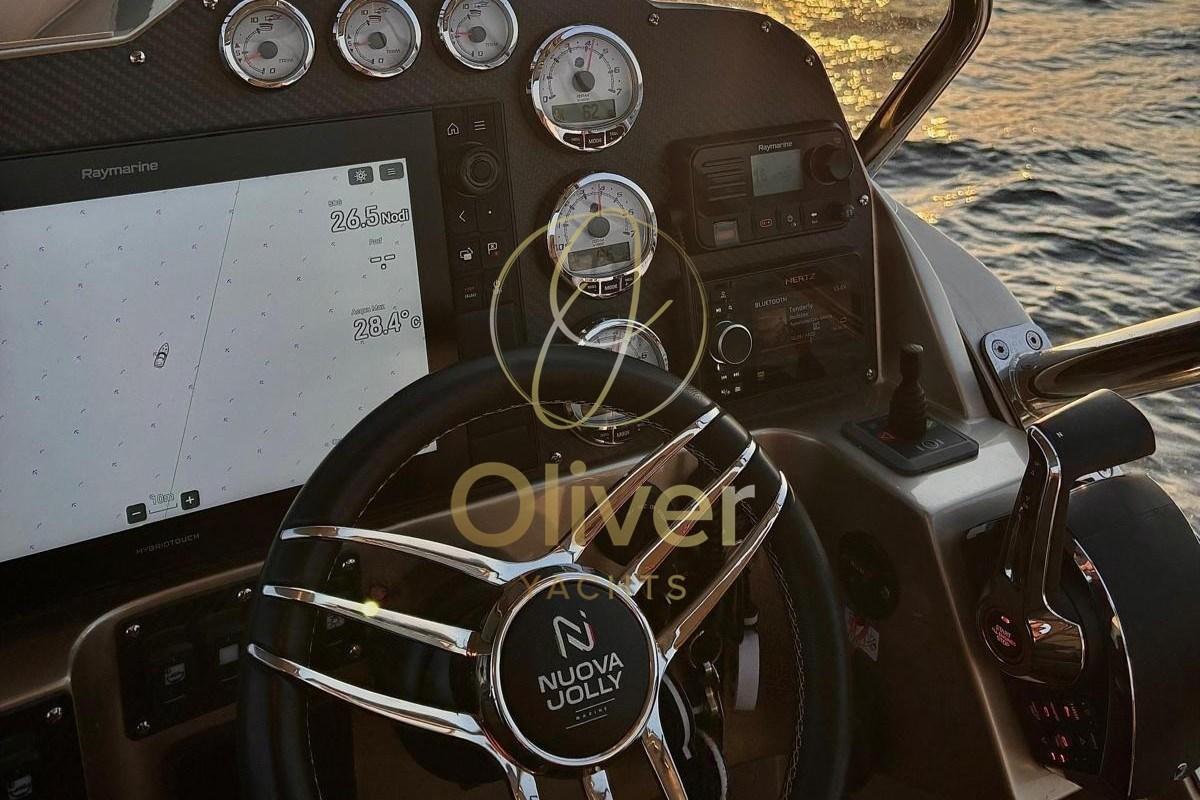 Le confort est celui d’un véritable navire phare de jour et de week-end : climatisation, douche arrière double (une en Elka Design Deck Shower 7080GAPC en carbone et une amovible avec compartiment en acier inoxydable), treuil électrique avec radiocommande, comptoir chaîné, ancre et chaîne en acier inoxydable poli. À bord, vous trouverez un double réservoir de carburant, un réservoir d’eau maxi avec chaudière, un réfrigérateur de 100 litres et un réfrigérateur avec compresseur indépendant.