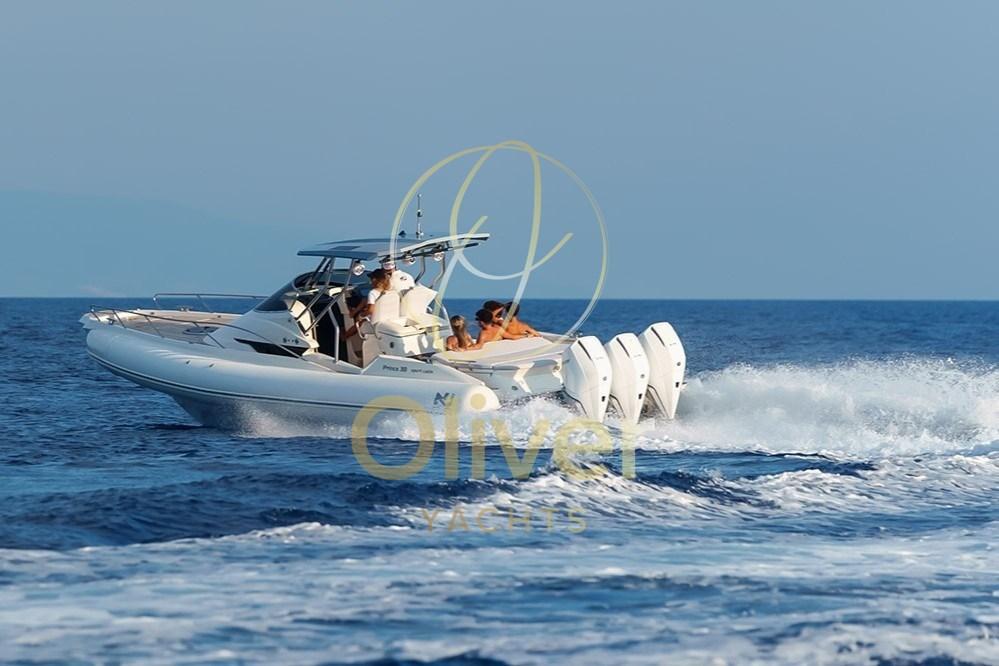 Le Prince 38 Sport Cabin – Année 2025 est un bateau unique en son genre, le premier exemple d’une série limitée, conçu pour ceux qui veulent se démarquer sans compromis. Avec une largeur totale de 11,80 mètres, ce modèle redéfinit le concept de bateau de sport de luxe, alliant performances extrêmes, design exclusif et attention obsessionnelle aux détails.