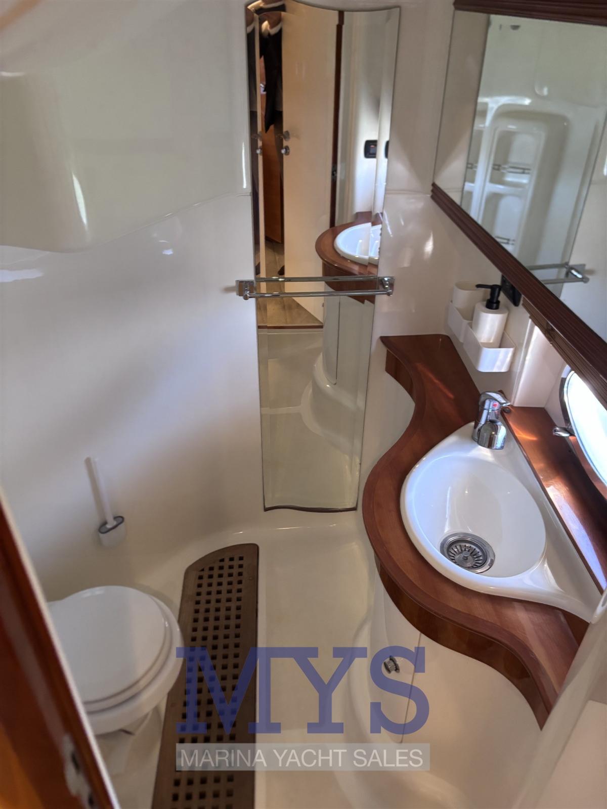 Eau sous pression, Douche de cockpit, Flaps hydrauliques (N°2), Garage à annexe, Hard top, Extincteur(s) fixe(s), Moniteur de batterie, Plateforme arrière, Cockpit en teck, Guindeau électrique, Echelle de bain, table de cockpit.