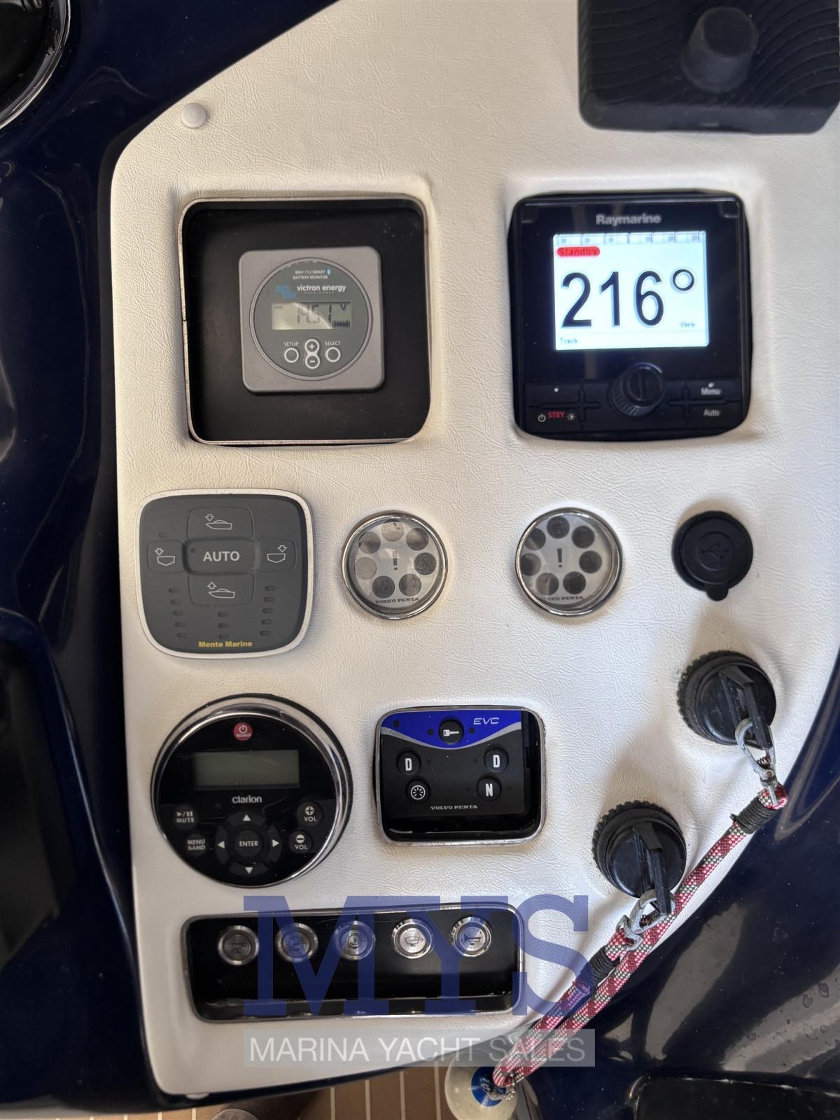 Le bateau est équipé de deux moteurs Volvo Penta D6 de 310 ch, des moteurs fiables et efficaces, réputés pour leur faible consommation de carburant, leurs excellentes performances et leur facilité d’entretien.