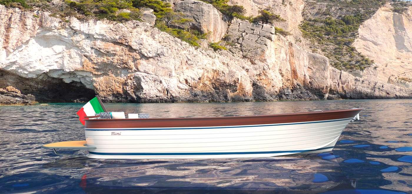 Le Mimi Libeccio 9.5 Classic est un véritable hommage au passé, un style inimitable pour le nouveau Libeccio 9.50 Classic, conçu comme un clin d'œil aux gozzos sorrentins des années 1960.