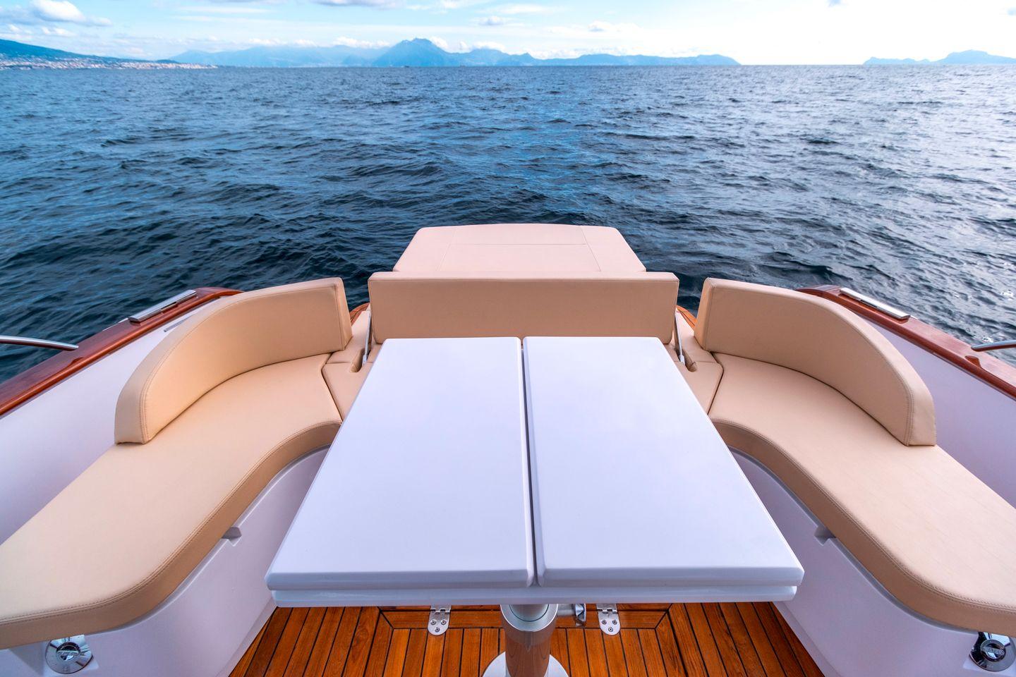 Le Gozzo Mimì Libeccio 11 WA , un modèle innovant de la marque, a été conçu pour répondre aux besoins de ceux qui souhaitent profiter pleinement du bateau à 360°, même à l'avant et pas seulement au mouillage.