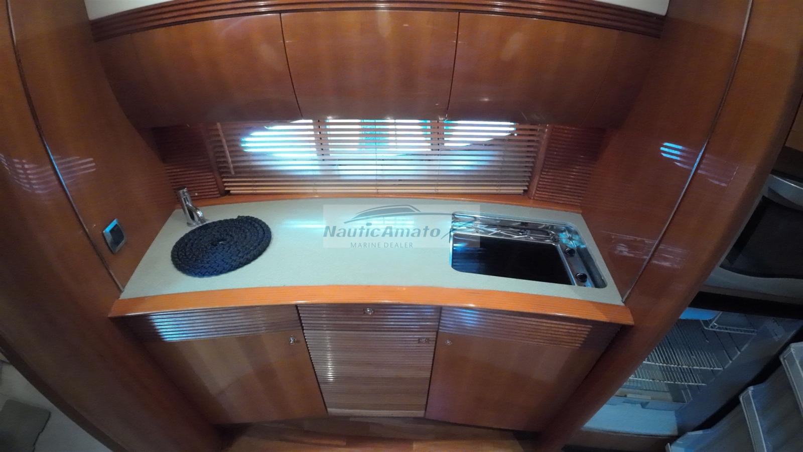 Douche de cockpit, Phare de poursuite, Flaps électriques, Indicateurs de flaps, Lavabo dans le cockpit, Éclairage de courtoisie, Passerelle (idraulica a scomparsa besenzioni), Cockpit en teck, Prise de quai, Guindeau électrique, Echelle de bain, table de cockpit, Table pliante de salon (elettricamente).