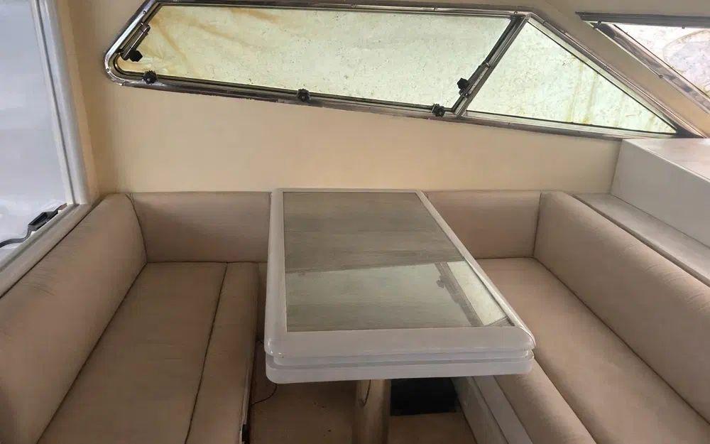 Avec ses 4 cabines, 7 couchages et 2 salles de bain, chacun y trouvera son espace. Que ce soit pour un week-end ou une longue escapade, l’intérieur a été pensé pour marier convivialité et intimité. Profitez du flybridge, du bain de soleil avant et du spacieux cockpit arrière qui offrent de nombreux espaces de détente et de plaisir face à la mer.