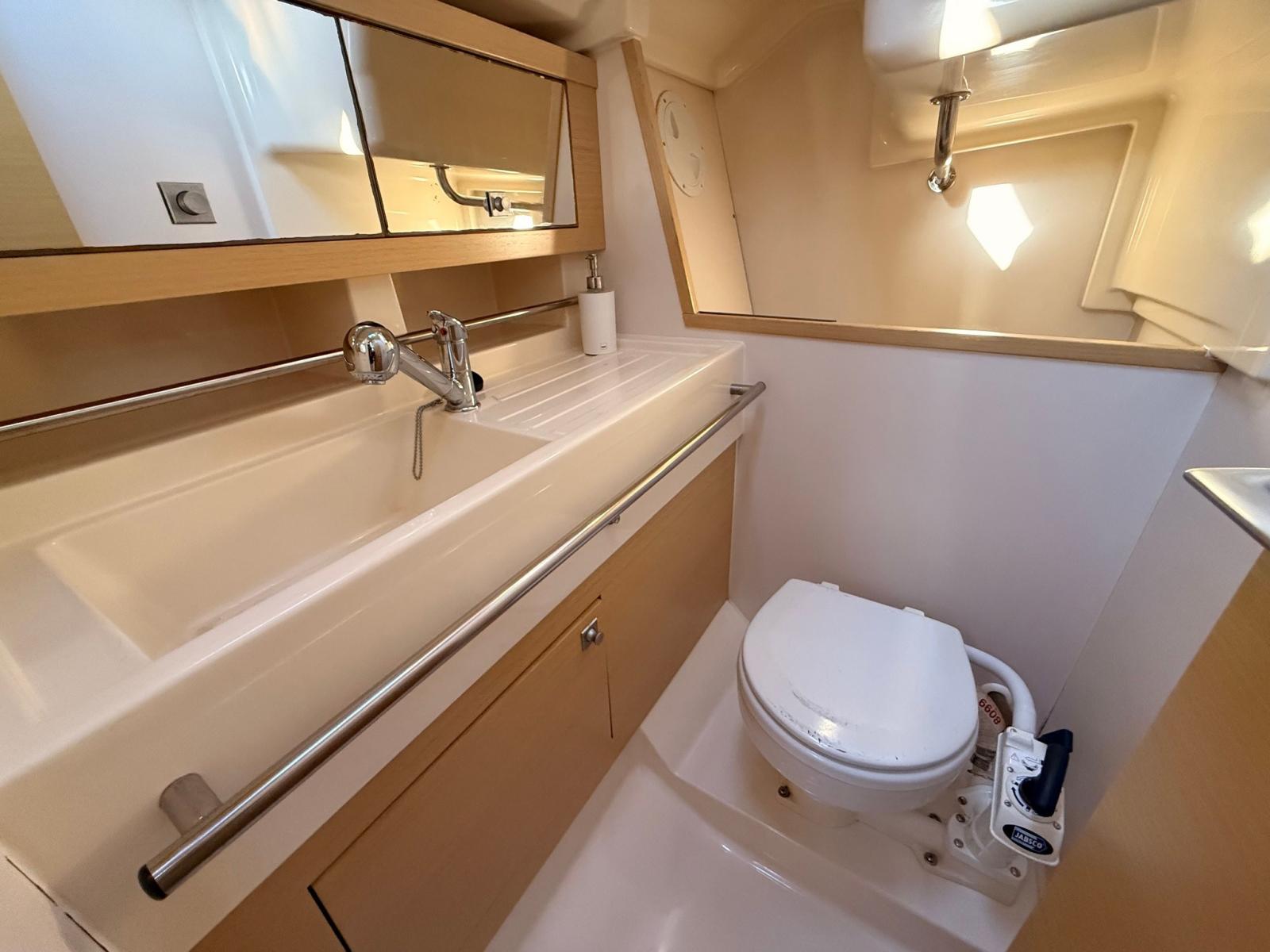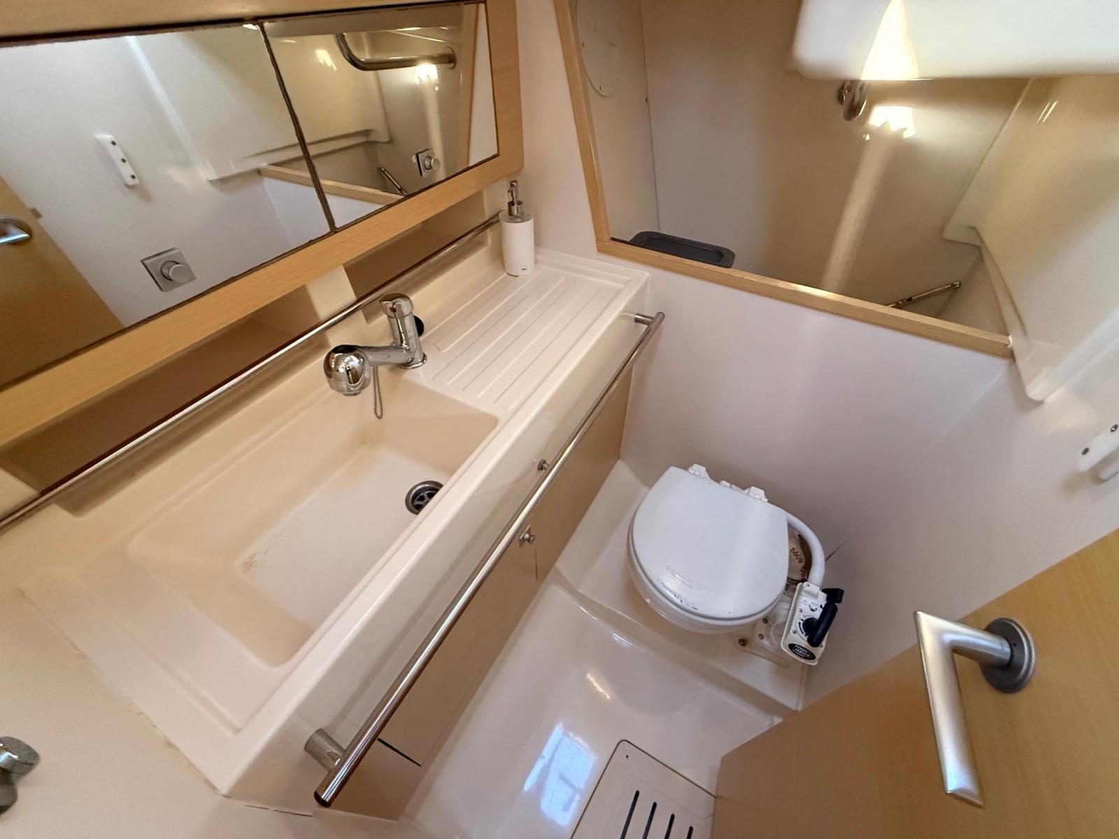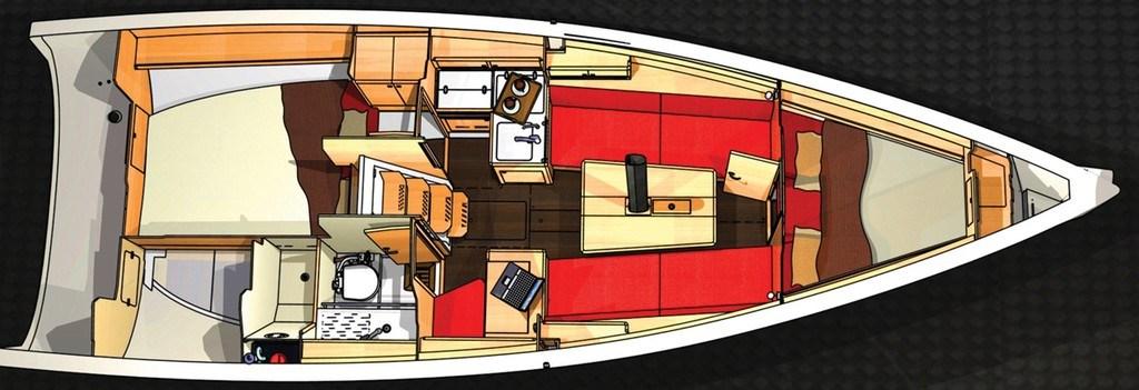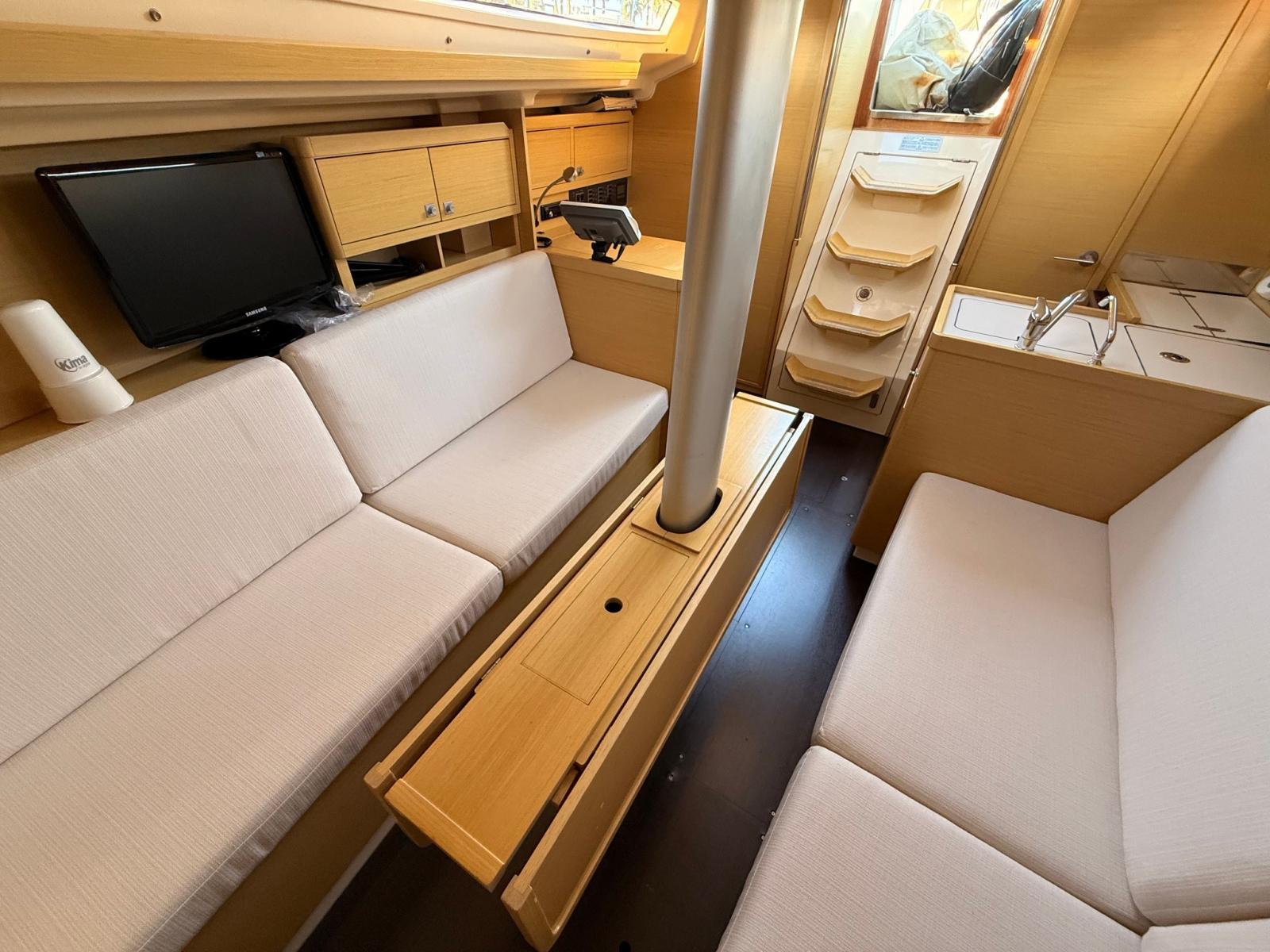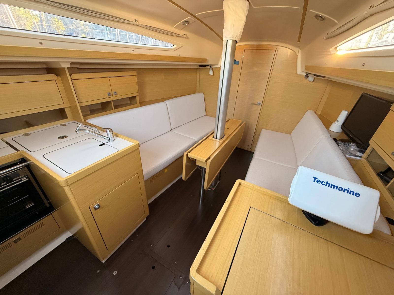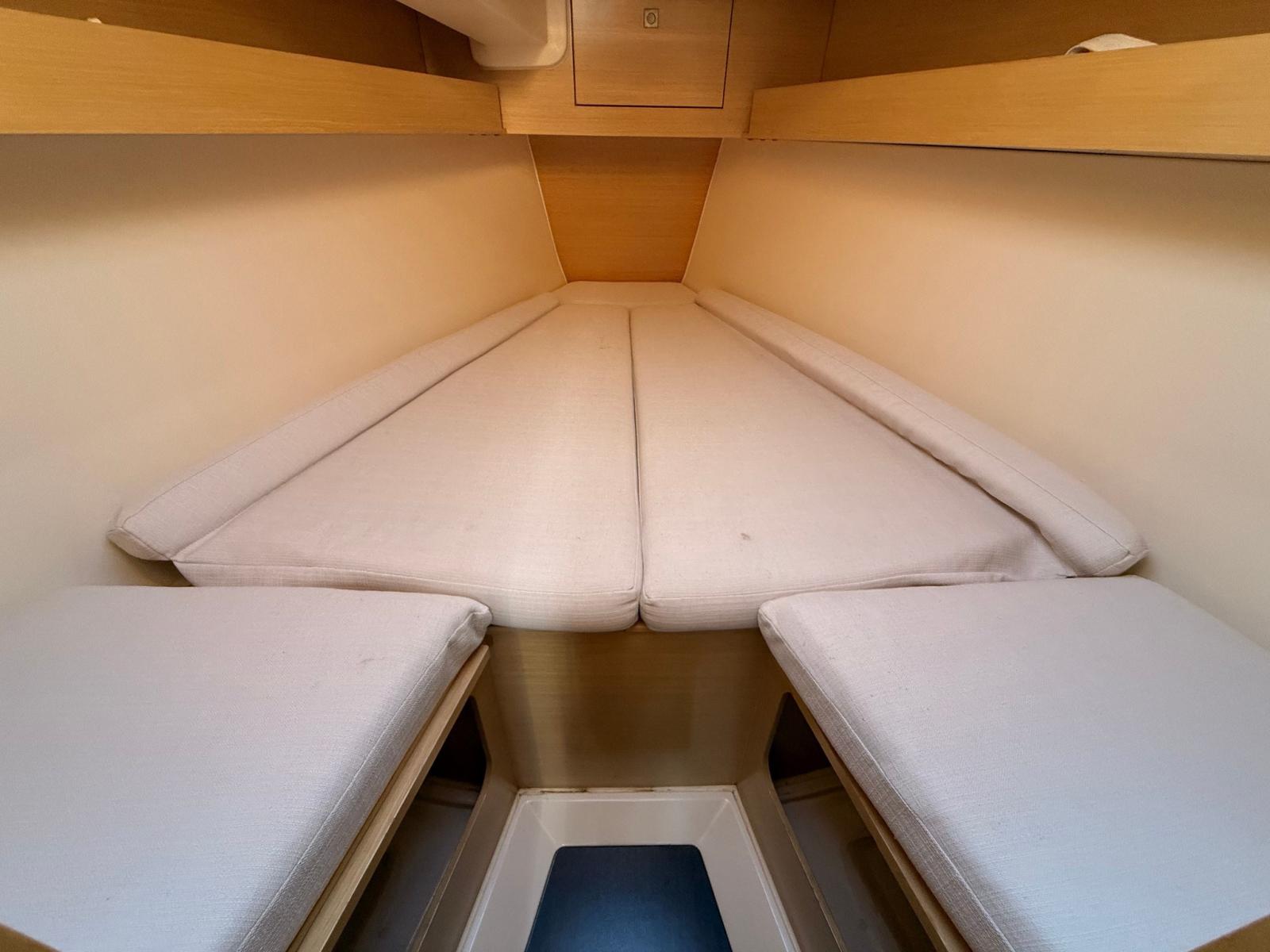 Eau sous pression, Batteries (3x70 Ah), Câble d’alimentation à quai, Douche de cockpit, Défenses, Pompe de cale manuelle, Porte latérale, Prise de quai, Guindeau électrique, Gréement monotoron, Echelle de bain, Winch (4x35 HARKEN).