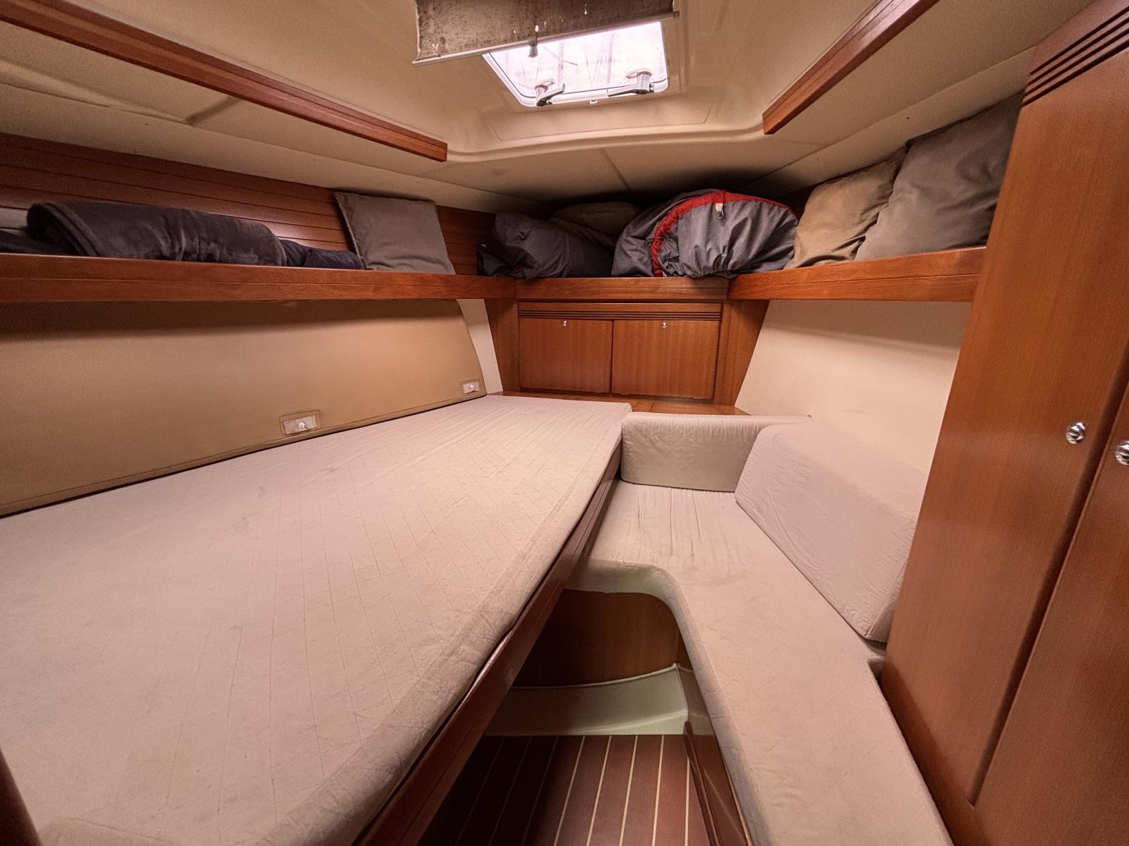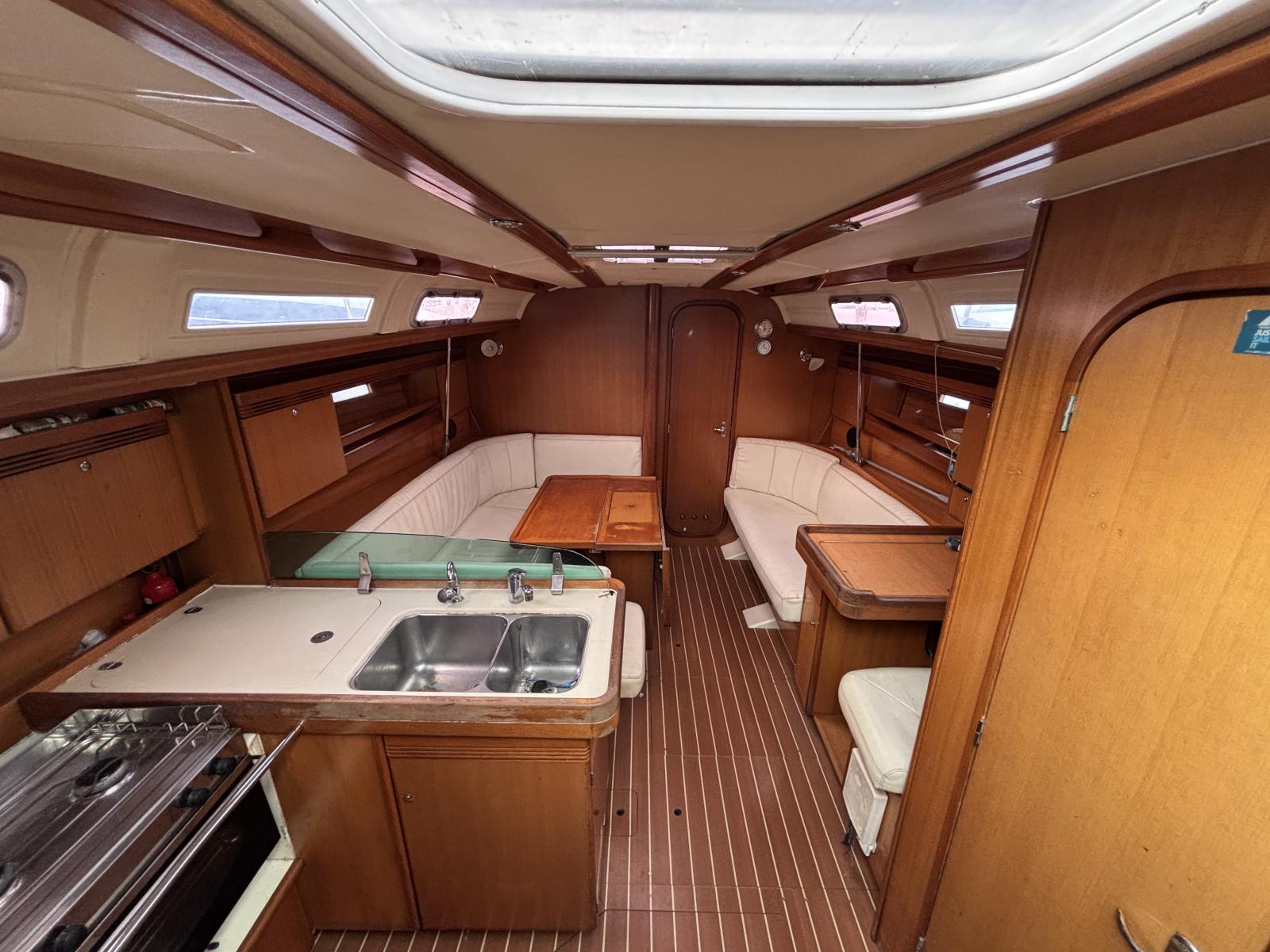 L'intérieur est composé de 3 cabines spacieuses, un carré transformable, lumineux, confortable et d'une cuisine fonctionnelle.