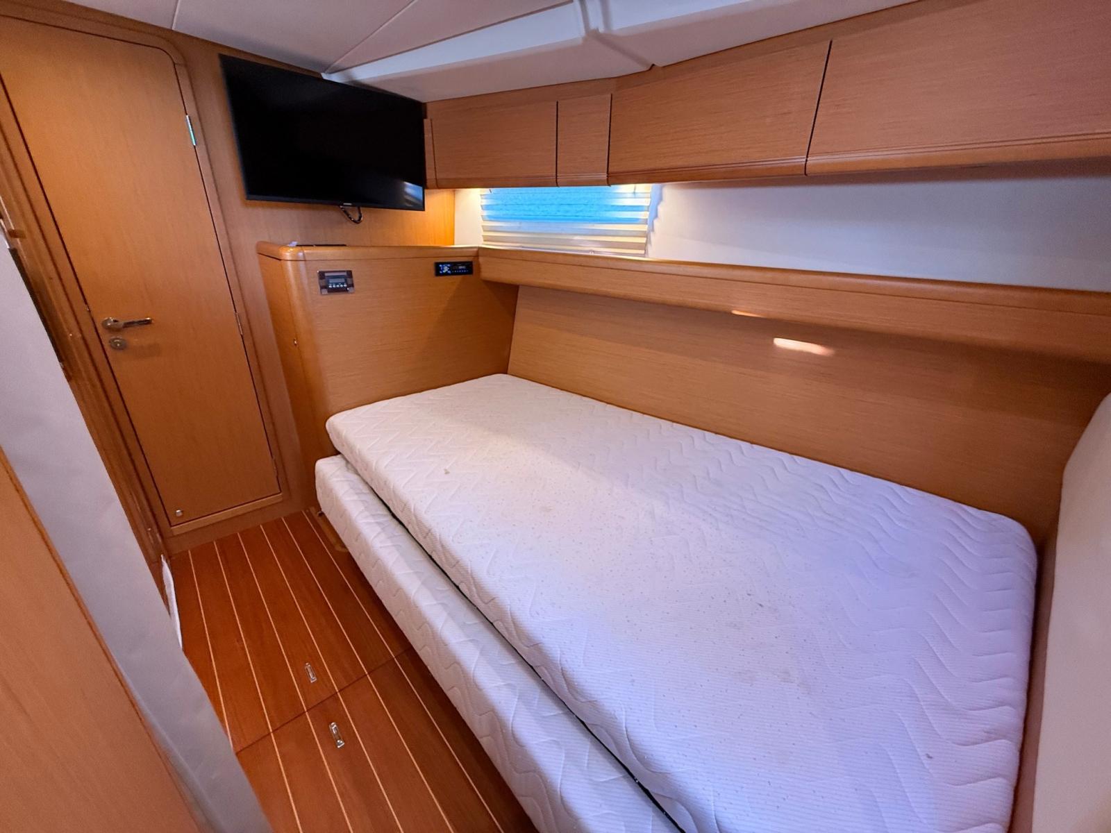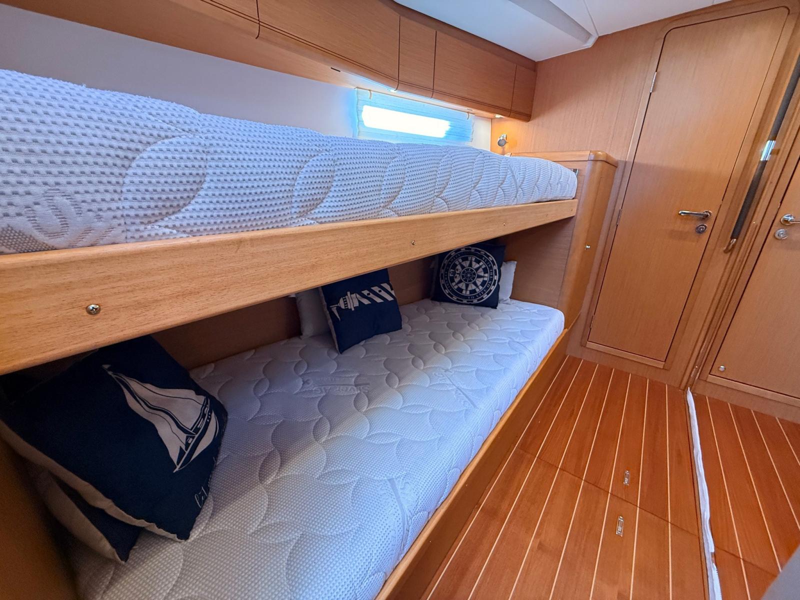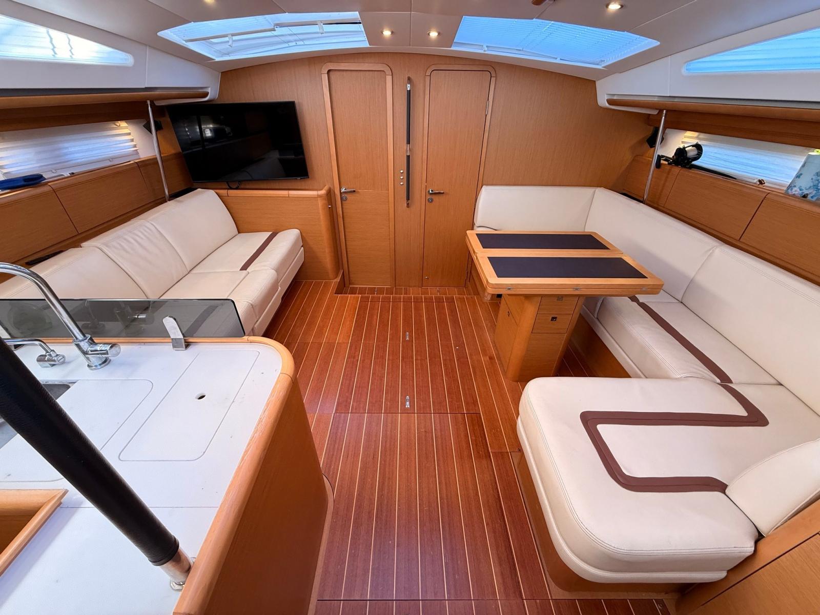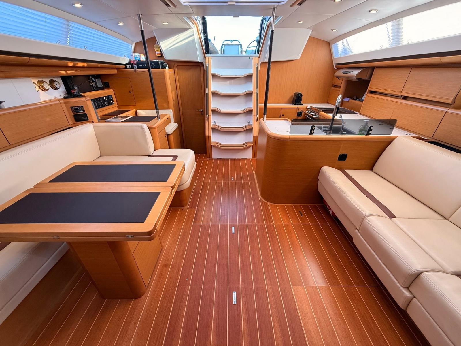 Splendid Jeanneau 57 en 3 cabines, 3 salles de bain + cabine d’équipage, un bateau d’un grand charme, conçu pour offrir confort, autonomie et excellentes performances en navigation.