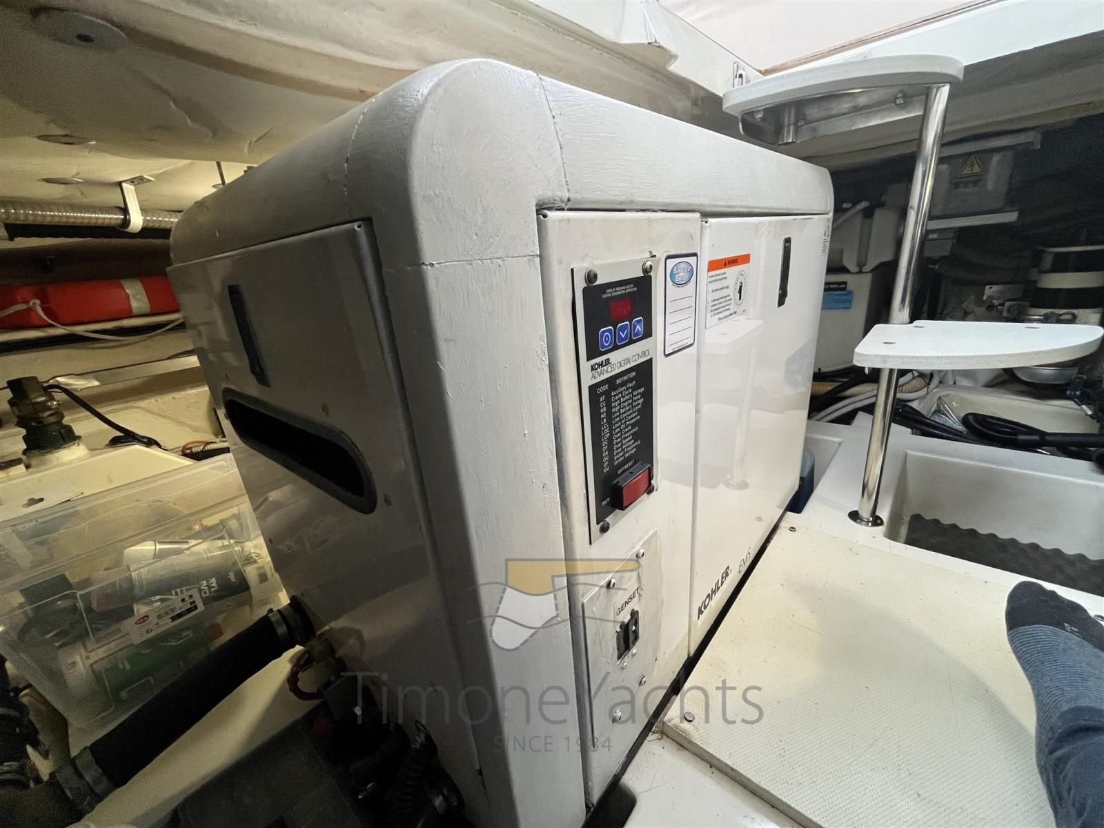 Alarme moteur, 9 Batteries, Câble d’alimentation à quai, Douche de cockpit, Double barre à roue, Phare de poursuite, Flaps hydrauliques, Extincteur(s) fixe(s), Passerelle (Teak), Plateforme arrière (Teak), Pompe de cale automatique, Cockpit en teck, Prise de quai, Guindeau électrique, Echelle de bain, table de cockpit, Table pliante de salon, Corne, Winch électrique avant.