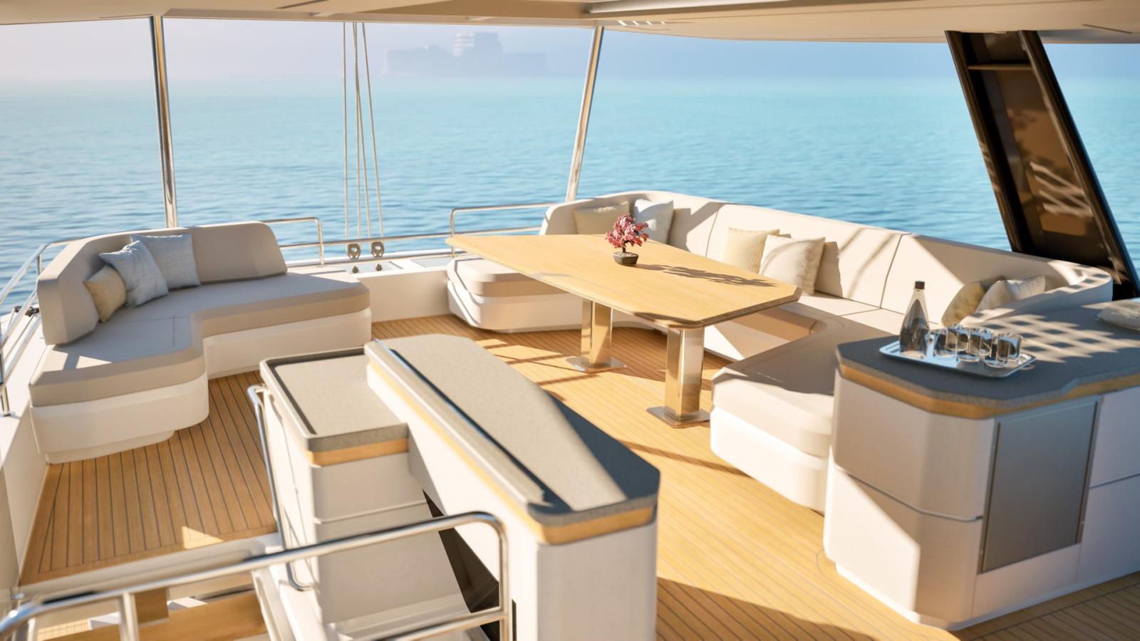 Le FPY | 70S incarne une vision contemporaine du yachting, où design affirmé et personnalisation poussée se rencontrent.