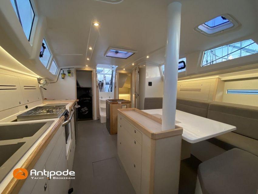 Mot du propriétaire : J'ai acquis et équipé ce JPK 45 FC pour un tour du monde en équipage réduit mais en toute sécurité et confort. Un problème de santé m'a contraint à mettre fin à ce périple et à mettre en vente mon fidèle coursier, je souhaite qu'il puisse nourrir d'autres rêves en taillant toujours un fier sillage.