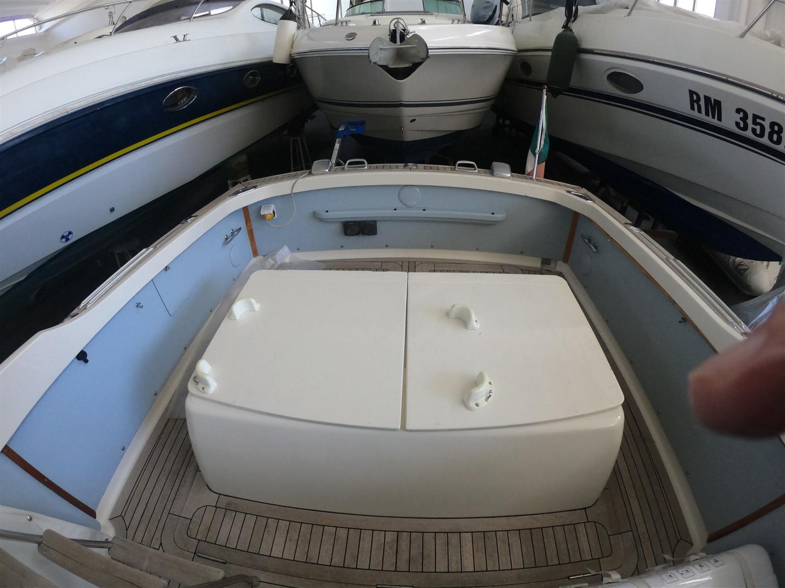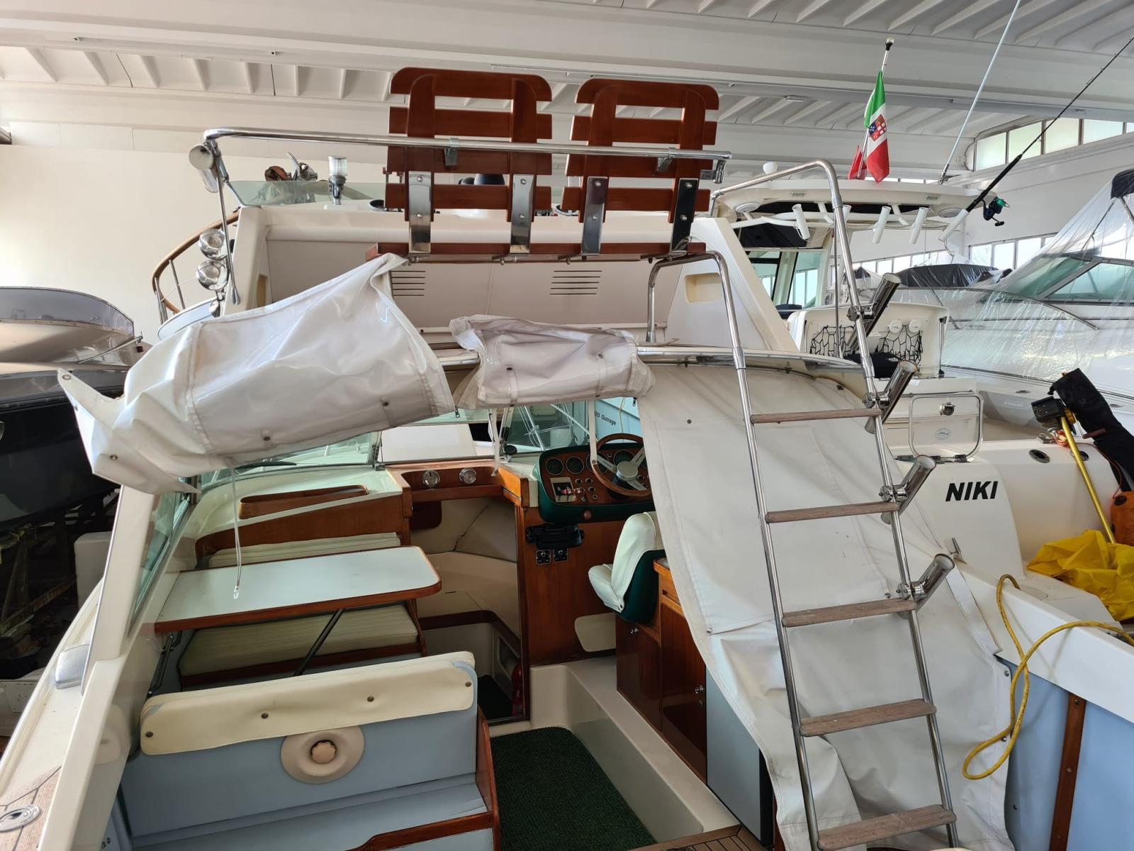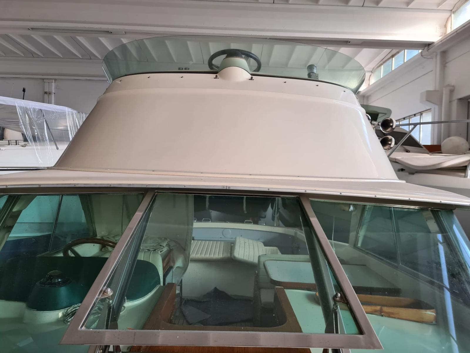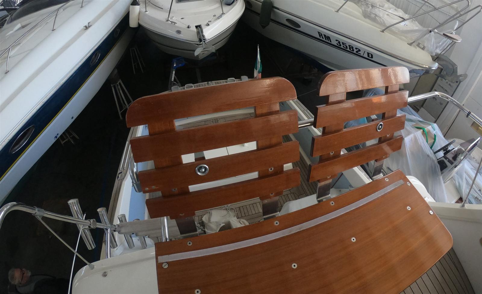 Alarme gaz, Alarme moteur, Eau sous pression, 3 Batteries (da sostituire), Couleur spéciale (verde Riva), Douche de cockpit, Double barre à roue, Flaps hydrauliques, Indicateurs de flaps, Lavabo dans le cockpit, Plateforme arrière (in teak), Pompe de cale manuelle, Porte latérale, Cockpit en teck (nuovo 2019), Prise de quai, Guindeau électrique, Echelle de bain, table de cockpit (abbattibile), Corne.
