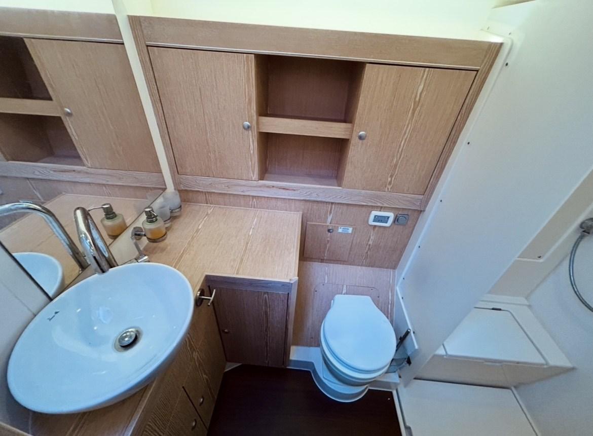 Alarme moteur, Eau sous pression, 3 Batteries (1x90 Ah + 2x165 Ah AGM), Passavant en teck, Douche de cockpit, Double barre à roue, Garage à annexe, 8 Défenses, Passerelle, Plateforme arrière, 2 Pompe de cale automatique, Pompe de cale manuelle, Porte latérale, Cockpit en teck, Prise de quai, Onduleur, Guindeau électrique, Gréement monotoron, Echelle de bain, Annexe, Pont en teck, 4 Winch (2 primari 65 AST e 2 secondari 55 AST), Winch électrique avant, Windex.