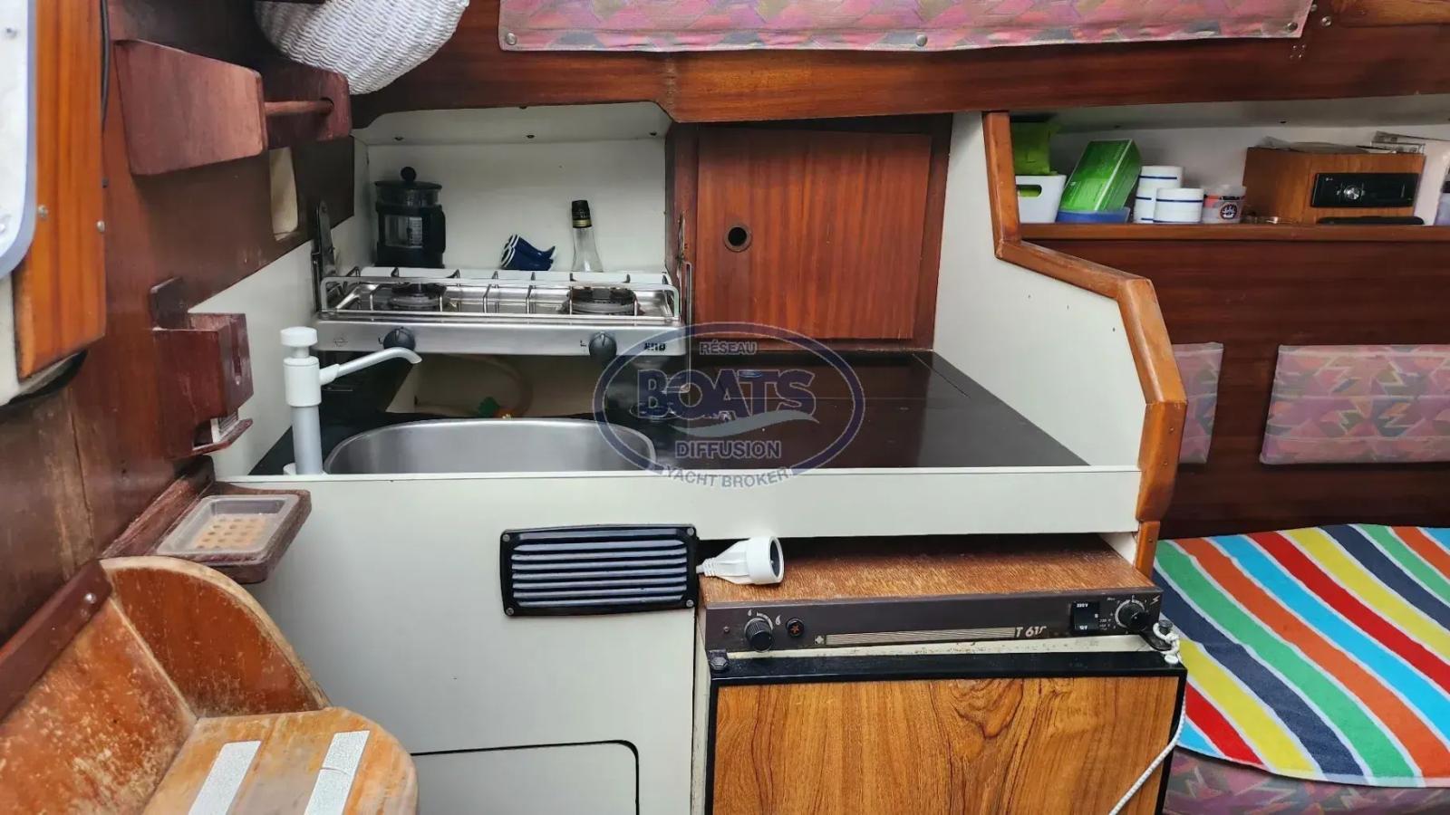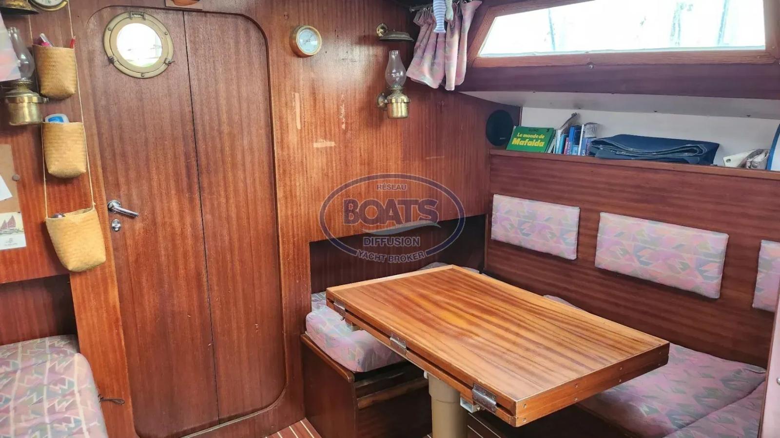 VISIBLE À LA ROCHELLE - CONTACTEZ JEAN-PIERRE OU AUDREY AU 06 09 42 34 55 - [email protected] - Brin de Folie de 1978 - version Quillard PTE: 1,45m - Aménagement intérieur : cuisine à gauche et table à cartes en face, accompagné de la traditionnelle couchette cercueil. Le carré dînette transformable en couchette double est décalé sur tribord. Sur l'autre bord, une couchette est disponible. Le poste avant reçoit les toilettes et une couchette double - Dernier carénage juillet 2025 - Dernière révision mécanique en 2024