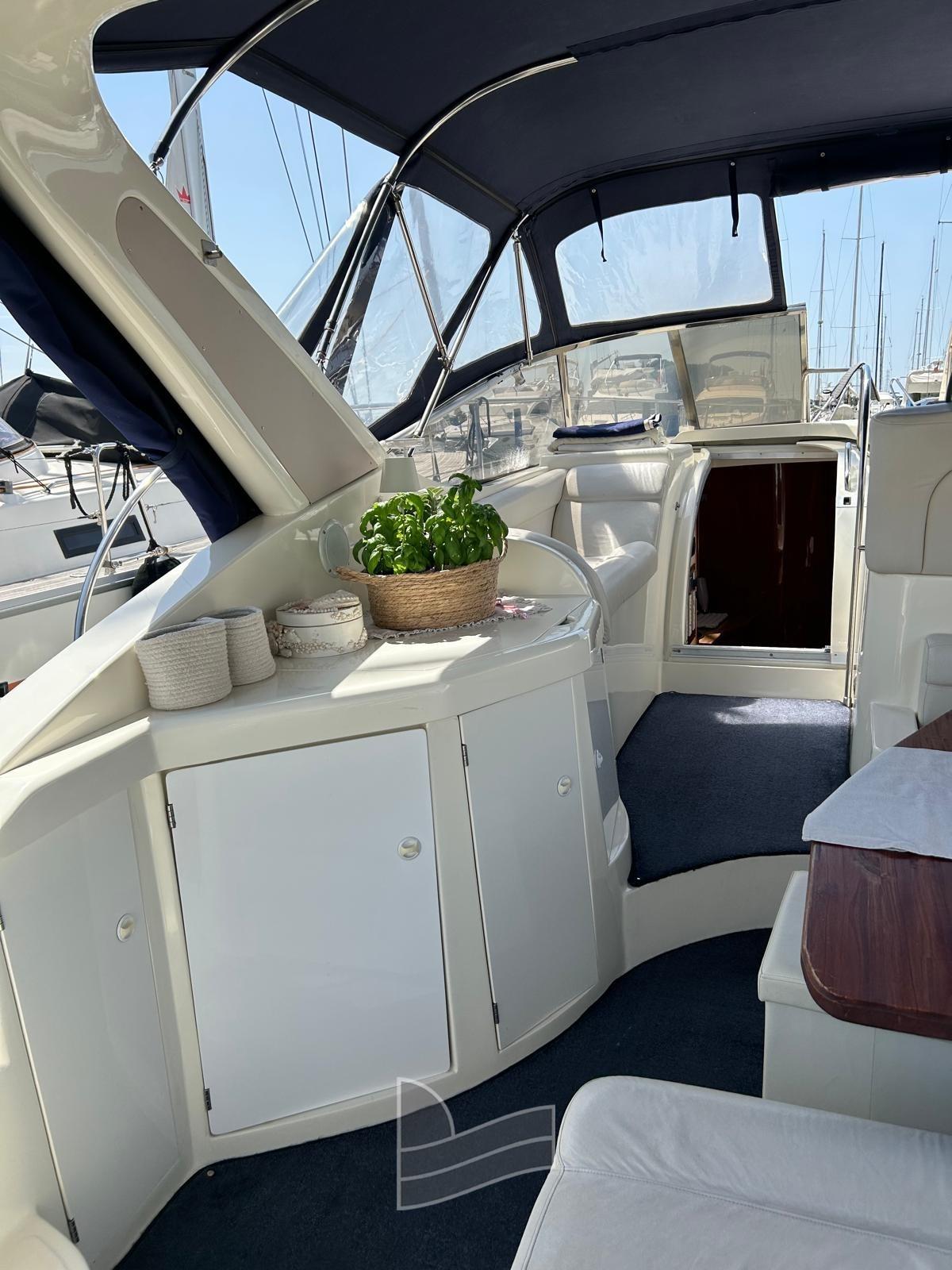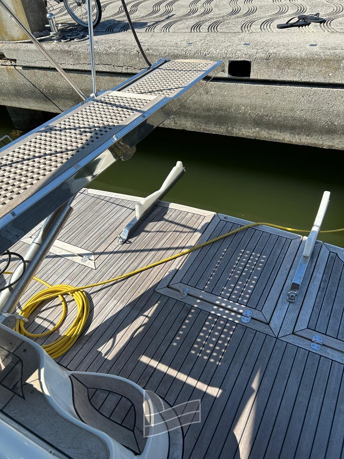 Alarme moteur, Eau sous pression, Câble d’alimentation à quai, 2 Flaps électriques, Extincteur(s) fixe(s), Passerelle (Elettroidraulica), Plateforme arrière (di poppa rivestita in teak), Pompe de cale automatique, Porte latérale, Rollbar, Guindeau électrique, Echelle de bain, table de cockpit, Corne.