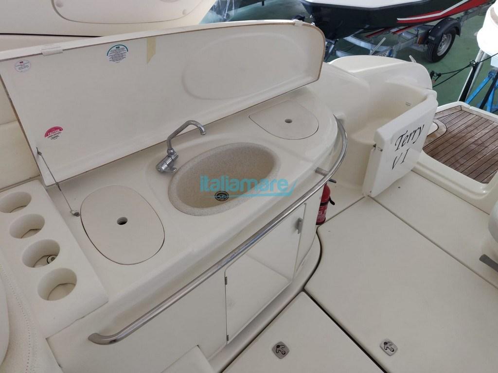 Alarme moteur, Alarme de pompe de cale, Eau sous pression, Douche de cockpit, Flaps électriques, Lavabo dans le cockpit, Éclairage de courtoisie, Passerelle, Plateforme arrière, Pompe de cale automatique, Cockpit en teck, Prise de quai, Connexion eau sous pression à quai, Rollbar, Guindeau électrique, Echelle de bain, table de cockpit.