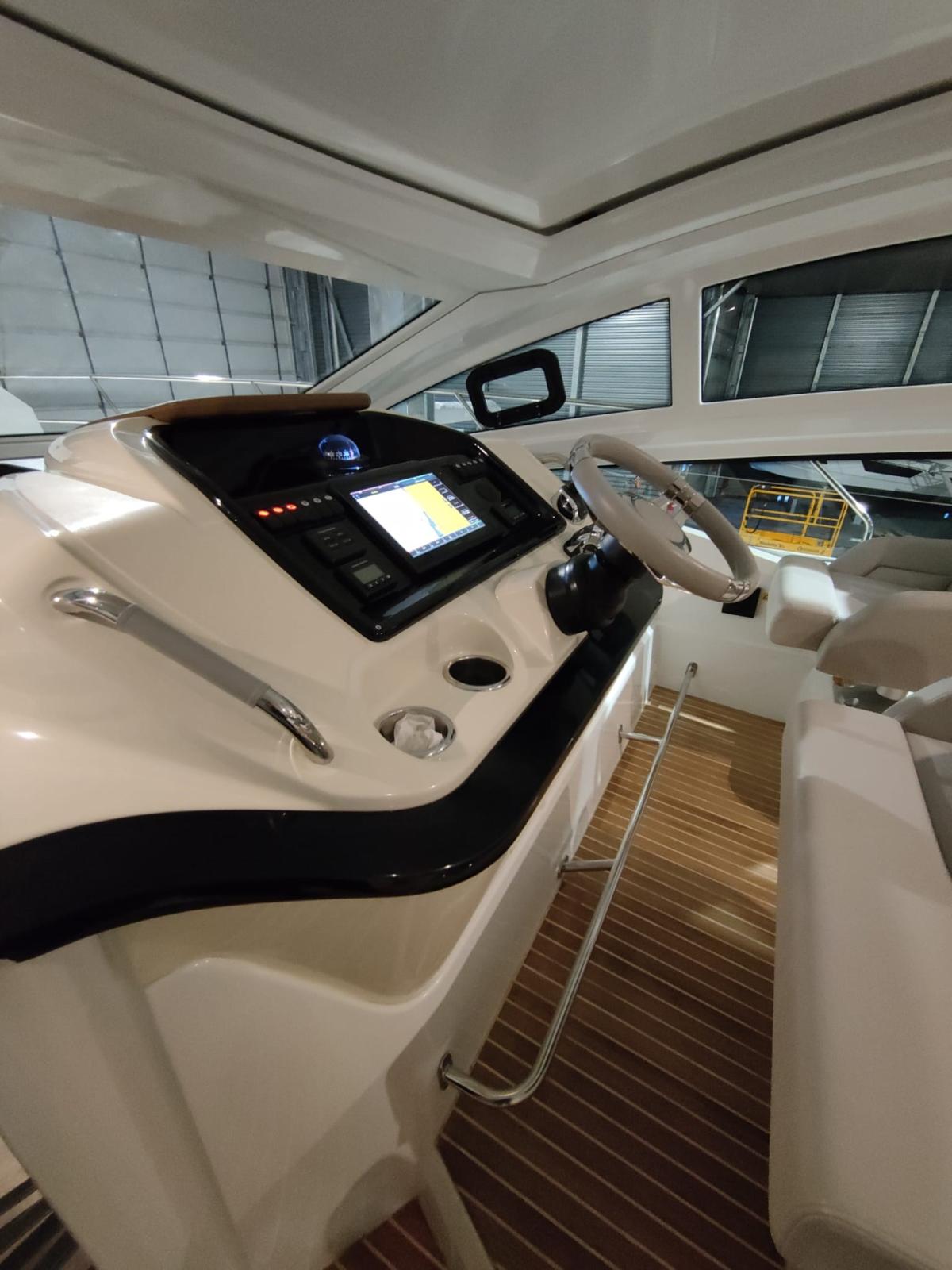 Teck dans la plate-forme, teck dans le cockpit, table de cockpit pliante, cuisine dans la plate-forme, joystick, menottes électroniques, volets électriques, gps, échosondeur, klaxon, vhf, lumières dans le cockpit, guindeau électrique, ancre et chaîne, climatisation, tv,