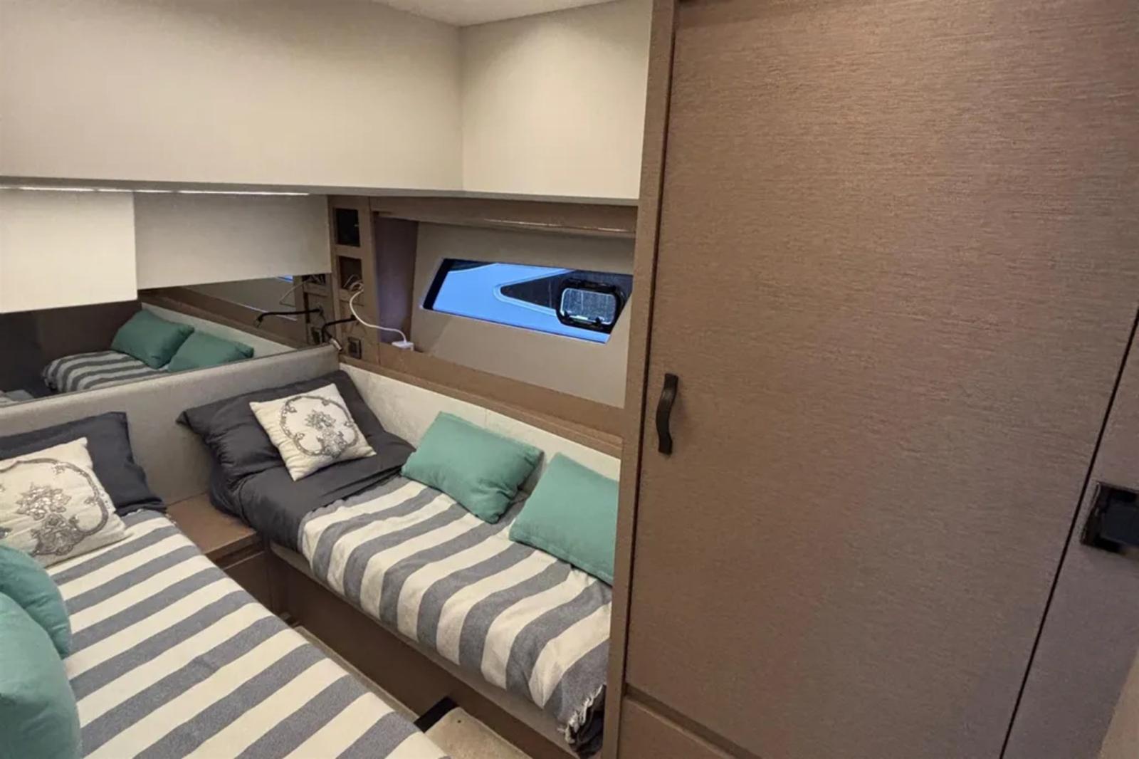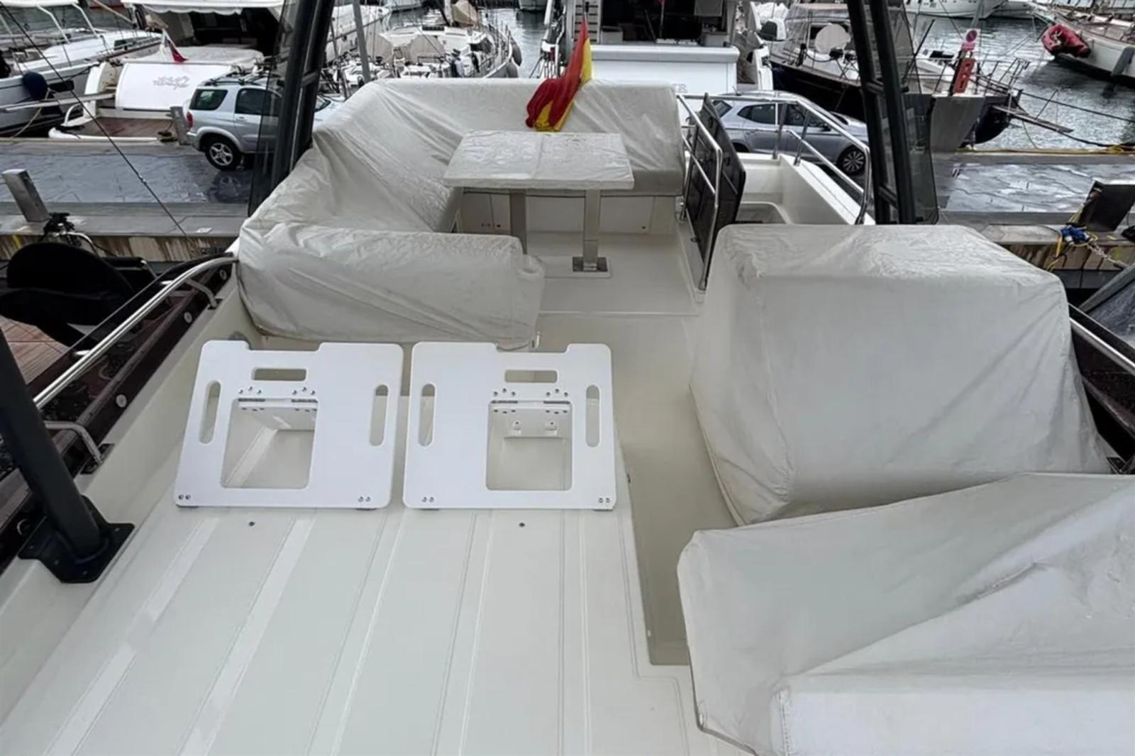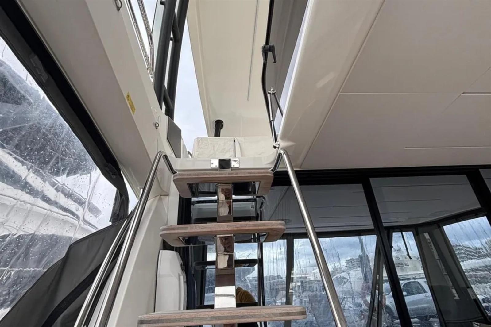 Alarme moteur, Alarme de pompe de cale, Eau sous pression, 8 Batteries, Passavant en teck, Douche de cockpit, Double barre à roue, Phare de poursuite, Flaps électriques (ZIPWAKE), Garage à annexe, Hard top (SUL FLYBRIDGE CON ILLUMINAZIONE LED), Extincteur(s) fixe(s), Indicateurs de flaps, Spots sous-marins, Moniteur de batterie, Passerelle (IDRAULICA), Plateforme arrière (AFFONDANTE), 3 Pompe de cale automatique, Porte latérale, Cockpit en teck, Prise de quai, Connexion eau sous pression à quai, Guindeau électrique, Echelle de bain, Stabilisateurs (SEAKEEPER NG6), table de cockpit, Filières avec sortie latèrale, Corne, Winch électrique arrière, Winch électrique avant.