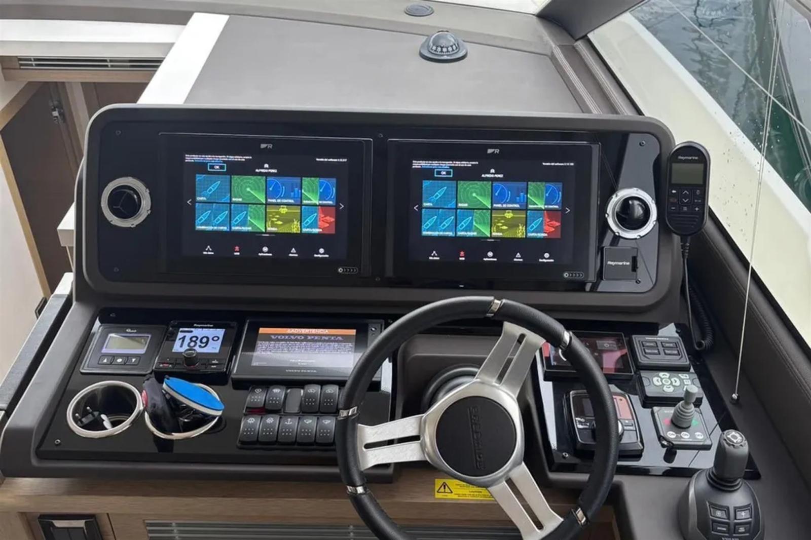 AIS (GARMIN 700), Indicateur d'angle de barre, Antenne radar, 2 Compas, 2 Commande électrique, Ordinateur fixe de bord, Compteur de chaîne, 3 Joystick, Pilote automatique (GYRO EV-2), 2 Plotter GPS (RAYMARINE 2 x MFD AXIOM 12"), Radar (MAGNUM 4kVA), Radio VHF (RAYMARINE RAY 91 CON AIS), Système de positionnement dynamique (VOLVO PENTA), Sondeur (RAYMARINE 3D REALVISION CON CHIRP).