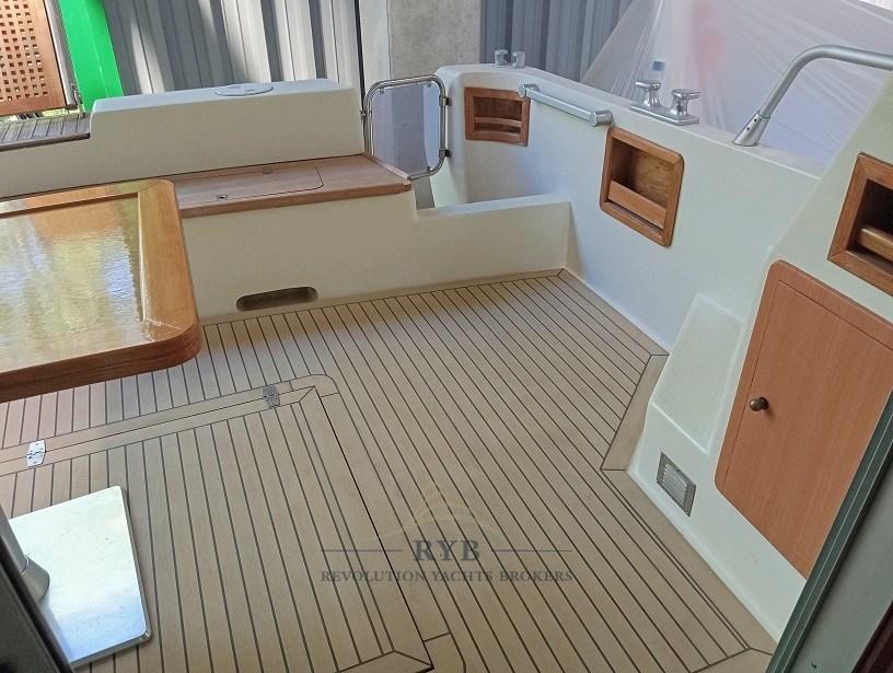 Eau sous pression, Douche de cockpit, Flaps hydrauliques, Extincteur(s) fixe(s) (2024), Passerelle, Plateforme arrière, Pompe de cale manuelle, Porte latérale, Cockpit en teck (2024), Prise de quai, Onduleur, Guindeau électrique, Echelle de bain, table de cockpit.