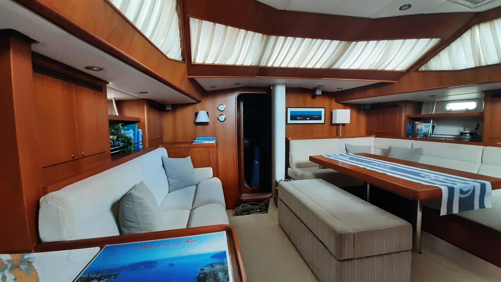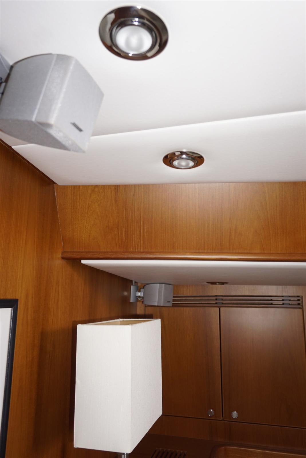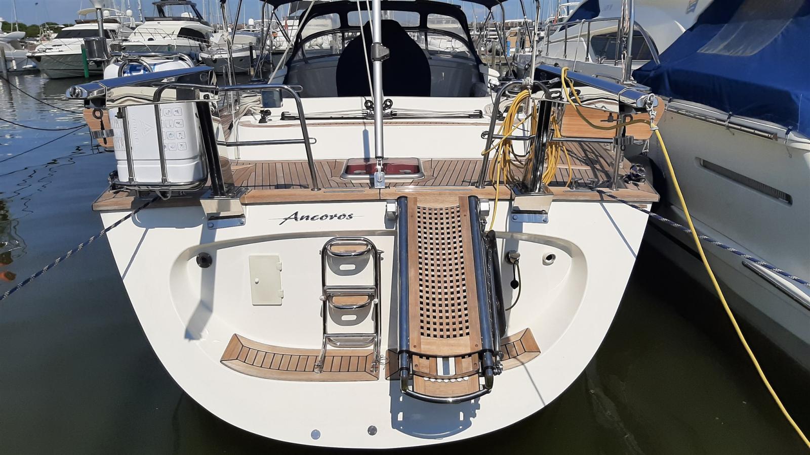 Pont en bois avec bande en acier inoxydable, réflecteur radar CYCLOPS II, stroboscope et lumière tricolore au sommet du mât, tous les hublots avec stores et moustiquaires, hélice GORI à 3 pales, extracteur de fumée dans la cuisine,