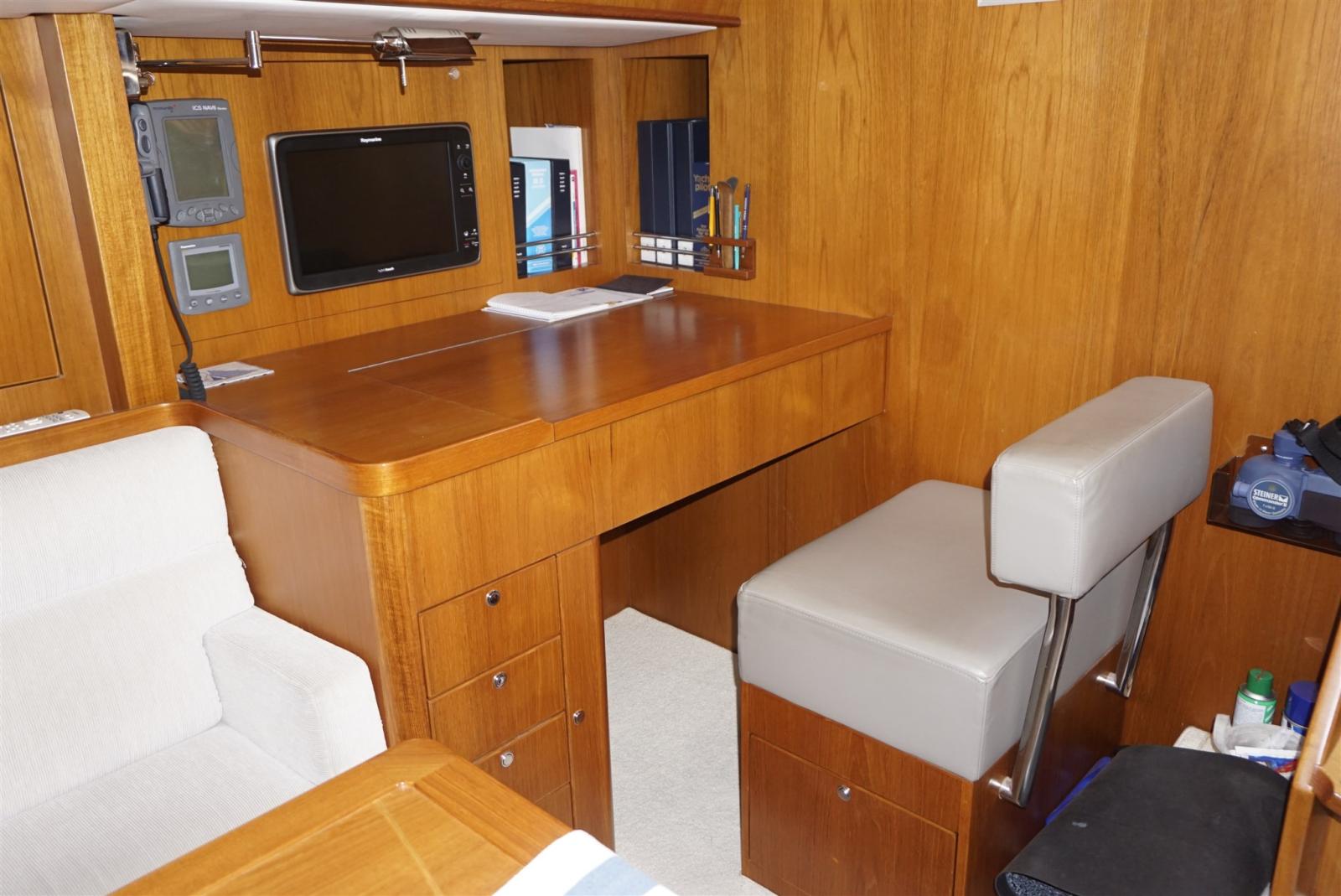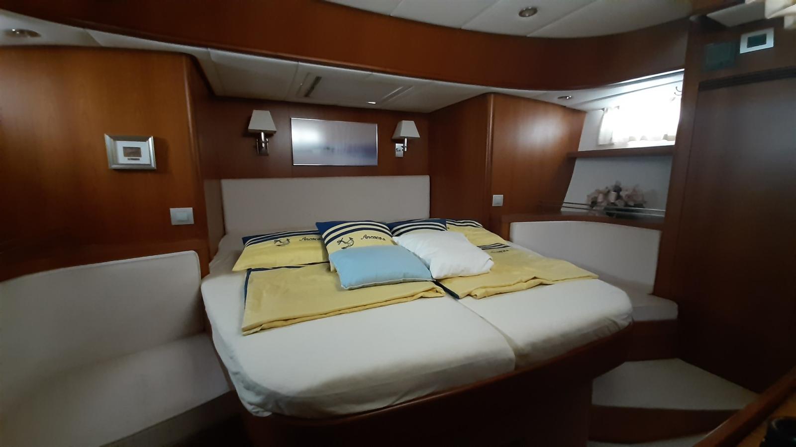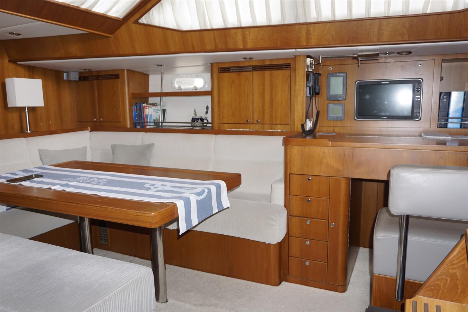 Pont en bois avec bande en acier inoxydable, réflecteur radar CYCLOPS II, stroboscope et lumière tricolore au sommet du mât, tous les hublots avec stores et moustiquaires, hélice GORI à 3 pales, extracteur de fumée dans la cuisine,