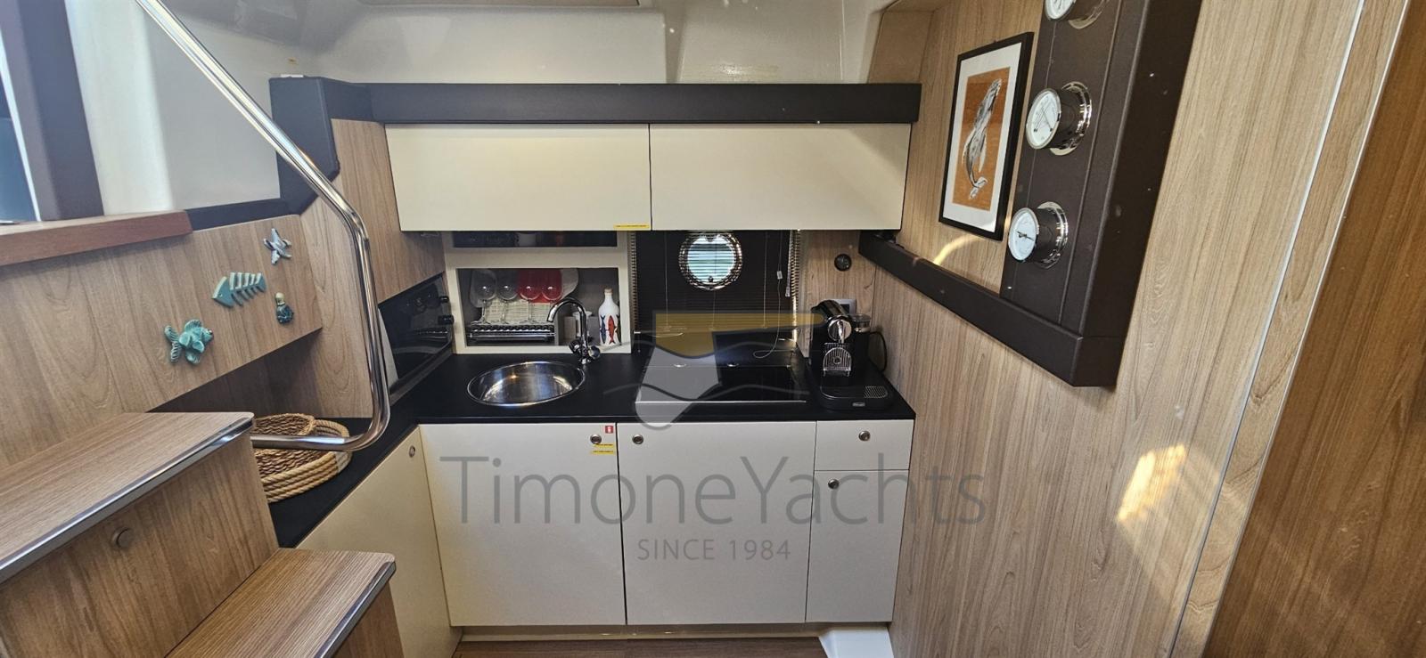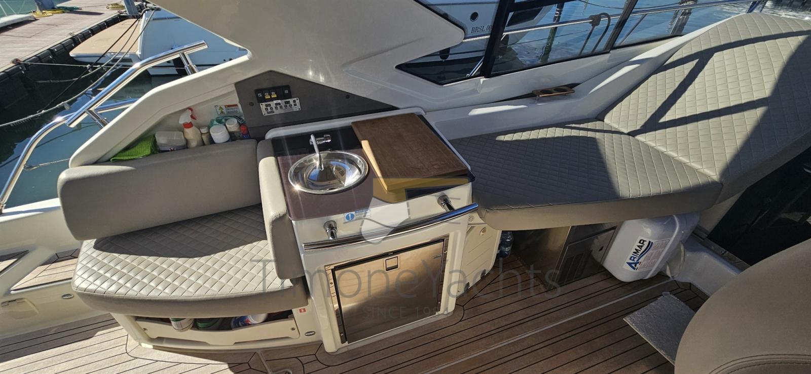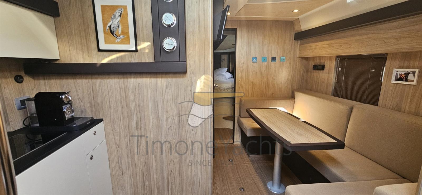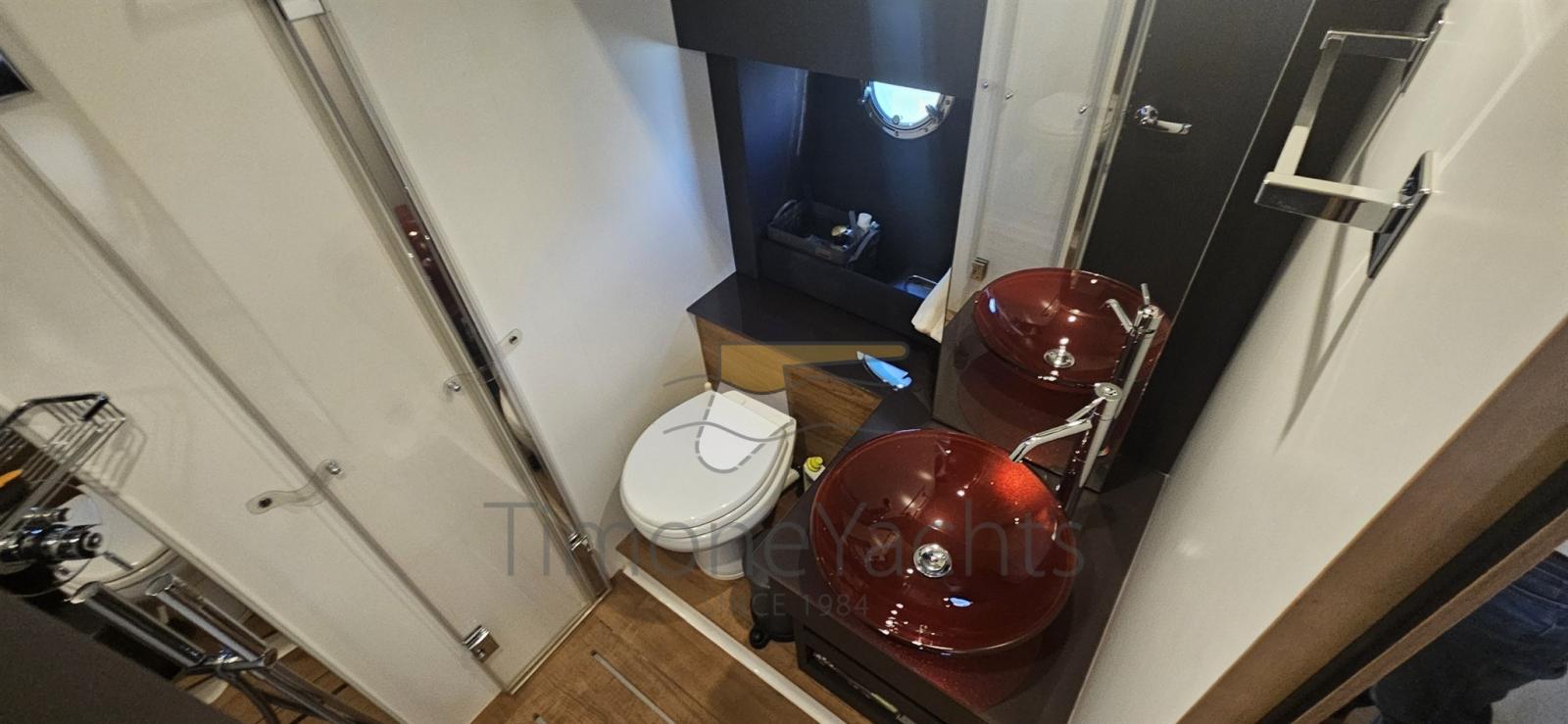 Ancre (acciaio inox), Trim hydraulique, Passavant en teck, Couleur spéciale, Phare de poursuite, Garage à annexe, Hard top (con soft top apribile elettrico), Lavabo dans le cockpit, Éclairage de courtoisie, Passerelle (idraulica 3 sfili idraulica), Plateforme arrière (affondabile), Cockpit en teck, table de cockpit, Table pliante de salon.