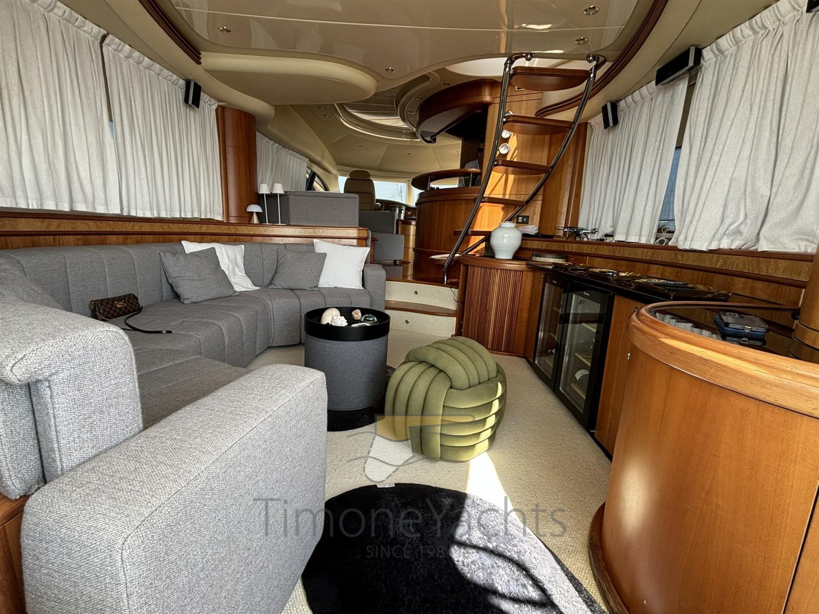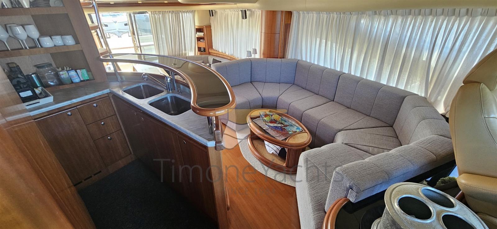 Passavant en teck, Phare de poursuite, Grue pour jet-ski (sul fly bridge), Éclairage de courtoisie, Spots sous-marins, Passerelle (a scomparsa), Porte latérale (di sbarco), Cockpit en teck, table de cockpit, Winch électrique arrière.