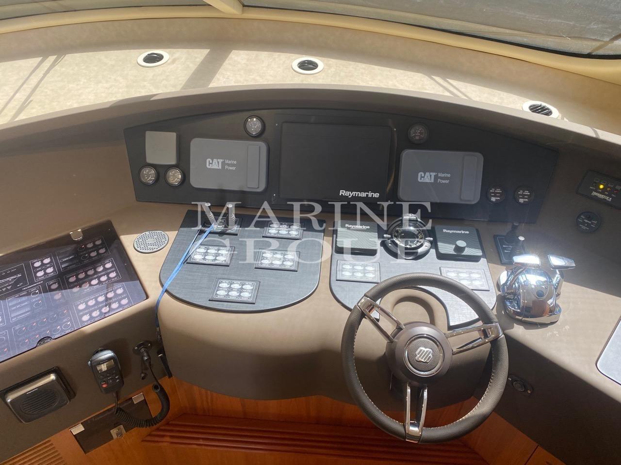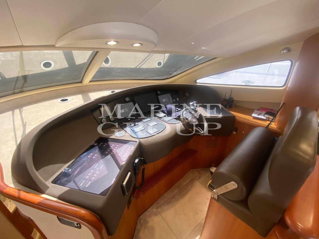 Douche de cockpit, Double barre à roue, Flaps électriques, Spots sous-marins, Passerelle (idraulica), Porte latérale, Cockpit en teck, Prise de quai, Connexion eau sous pression à quai, Guindeau électrique, Echelle de bain, table de cockpit (trasformabile in prendisole), Corne.