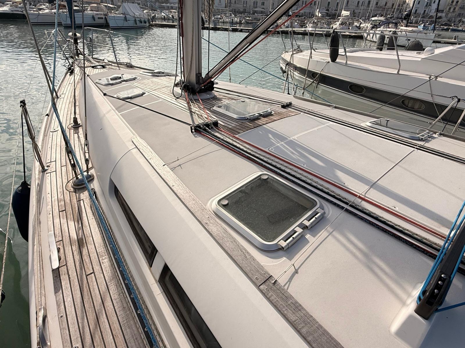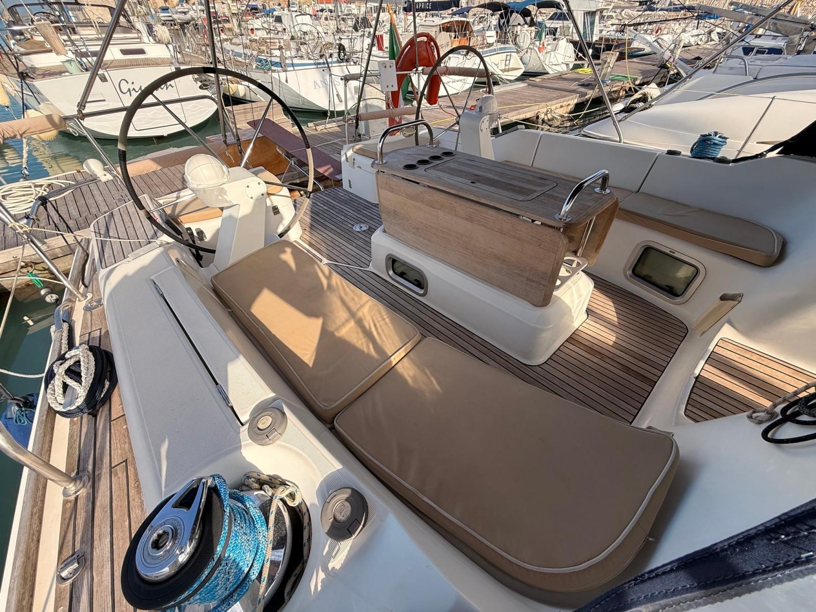 Ancre (DELTA 20KG), Eau sous pression, Batteries (3 SERVIZI 2024 - 2 ELICA DI PRUA 2024 - 1 MOTORE), Passavant en teck, Douche de cockpit, Double barre à roue, Défenses, Pompe de cale manuelle, Porte latérale, Cockpit en teck, Prise de quai, Guindeau électrique, Gréement monotoron, Echelle de bain, Système de filtration des eaux usées, table de cockpit, Winch, 3 Winch électrique.