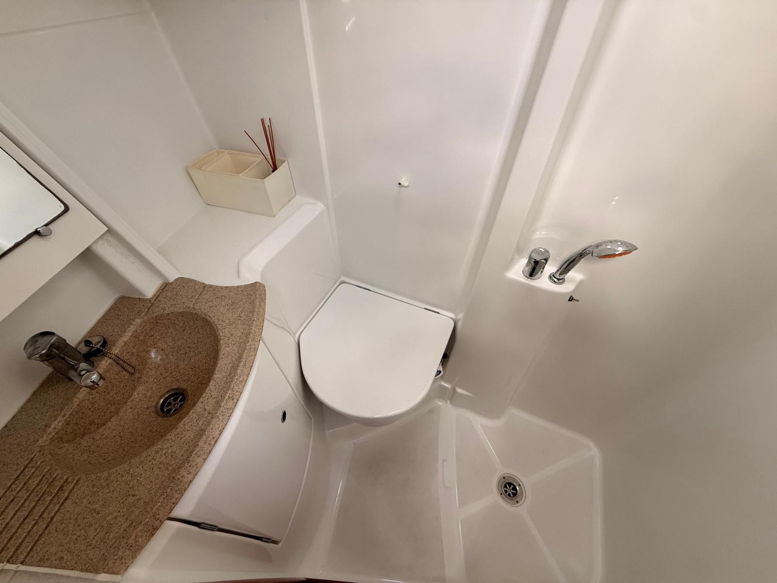 Ballon d'eau chaude, Cuve à eaux noires, Prises interieures 12v, Prises interieures 220v, Toilettes manuelles.