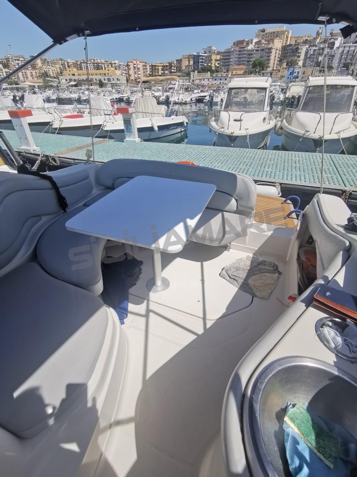 Eau sous pression, Douche de cockpit, Lavabo dans le cockpit, Plateforme arrière (Plancetta maggiorata), Guindeau électrique, Echelle de bain, table de cockpit.