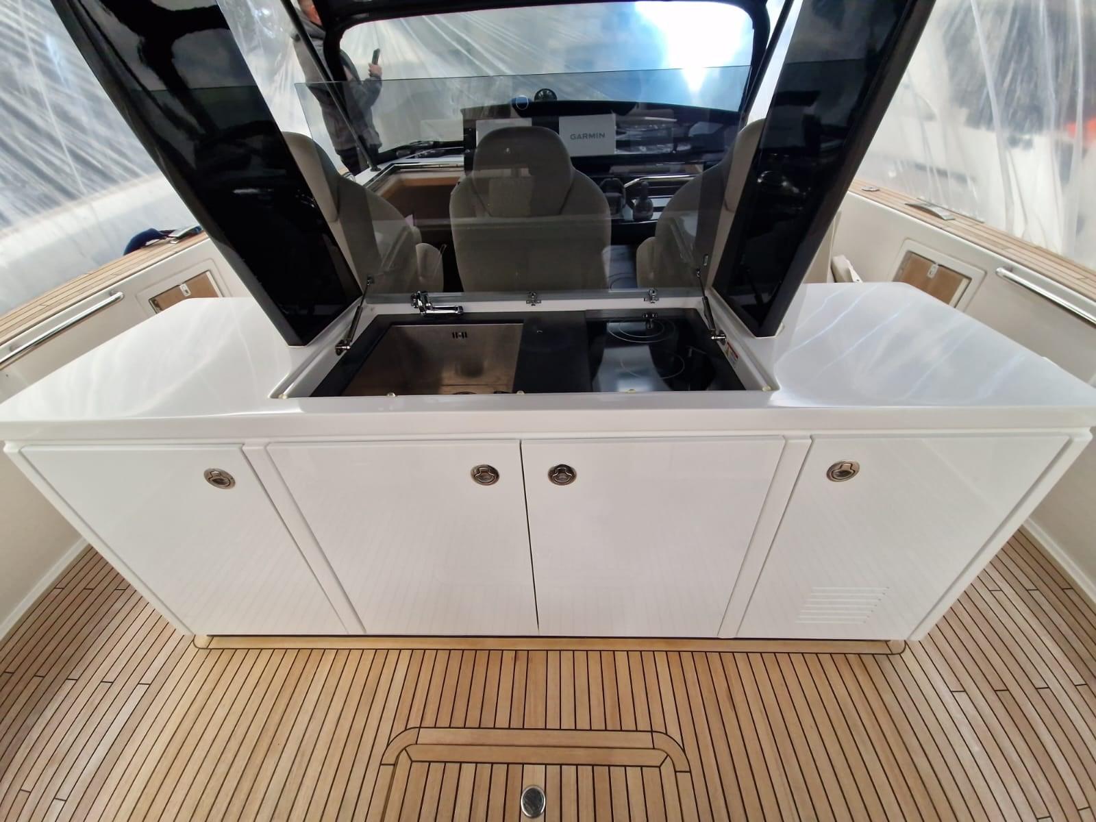 Alarme gaz, Auto Dynamic Trim Interceptor, Eau sous pression, Passavant en teck, Câble d’alimentation à quai, Douche de cockpit, Flaps électriques, Hard top, Extincteur(s) fixe(s), Indicateurs de flaps, Moniteur de batterie, Pompe de cale automatique, Pont en teck, Cockpit en teck, Guindeau électrique, Echelle de bain, Stabilisateurs, Corne, Pont en teck.
