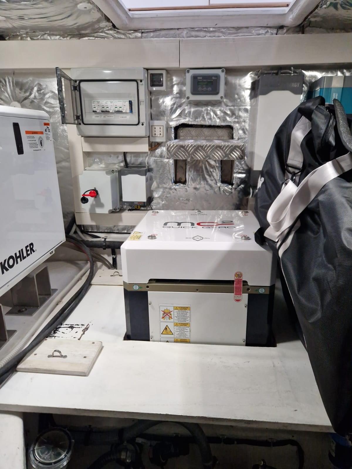 Systèmes généraux : climatisation, générateur, chaudière, machine à glace, autoclave, système d’extinction d’incendie, réservoir d’eau noire, pompes de cale électriques.