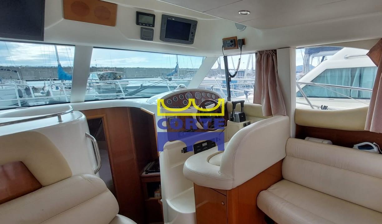 Alarme moteur, Eau sous pression, 5 Batteries, Chargeur de batterie (25 A), Douche de cockpit, Double barre à roue, Flaps électriques, Bossoirs pour annexe (passerella), Éclairage de courtoisie, Passerelle (idraulica), Plateforme arrière (strutturale poppa in teak), Pompe de cale automatique, Pompe de cale manuelle, Porte latérale, Cockpit en teck, Prise de quai, Guindeau électrique, Echelle de bain, Winch électrique avant.