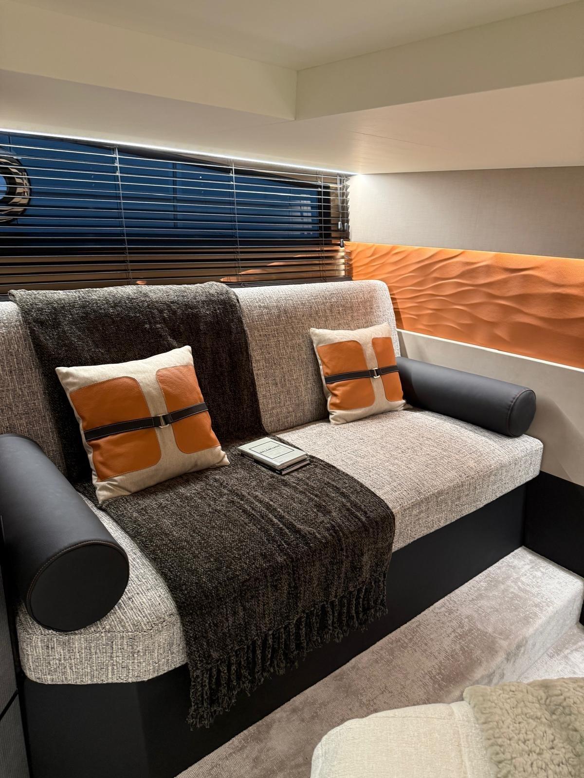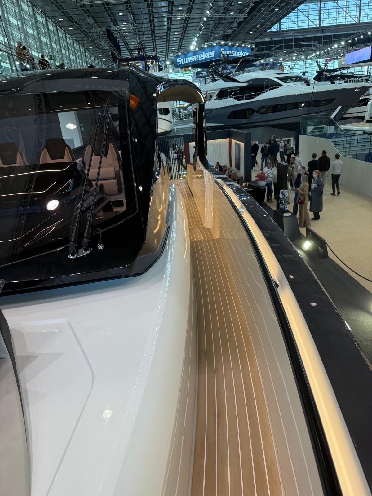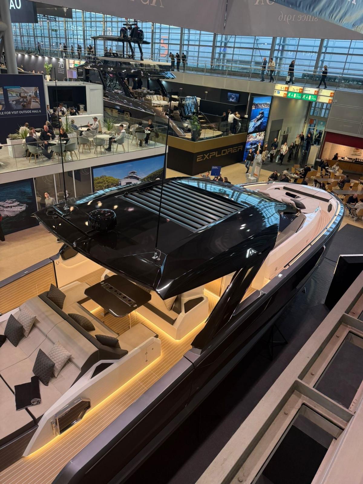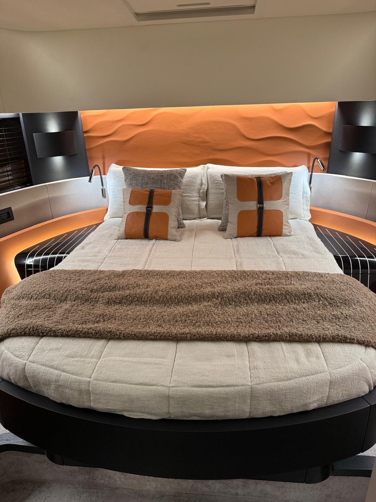 La coque en V garantit une navigation fluide, stable et efficace, offrant maniabilité et sécurité même aux vitesses les plus soutenues. Le cockpit est enrichi par les rampes latérales ouvrantes, un élément de grande valeur qui agrandit considérablement la surface au sol et crée une véritable terrasse surplombant la mer, transformant l’espace de vie extérieur en un espace ouvert et lumineux, parfait pour la détente et la convivialité.