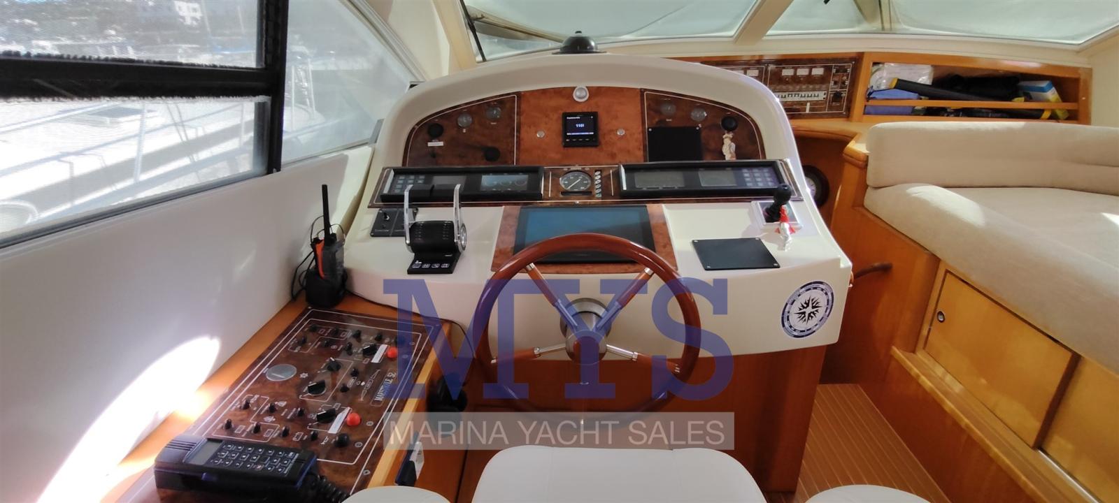 Double roue, GPS, Radar, pilote automatique, VHF, sondeur à écho, propulseur d’étrave proportionnel, volets électriques, commandes électroniques moteur, guindlard électrique, compteur de chaîne, instrumentation complète du moteur, pompes de cale automatiques et manuelles.
