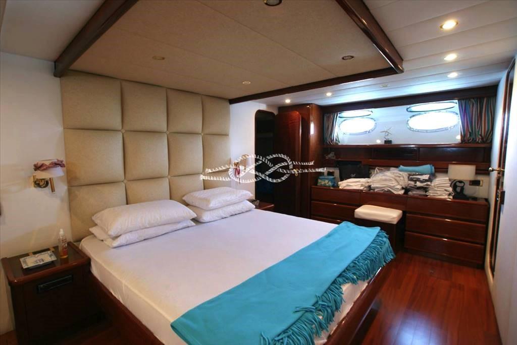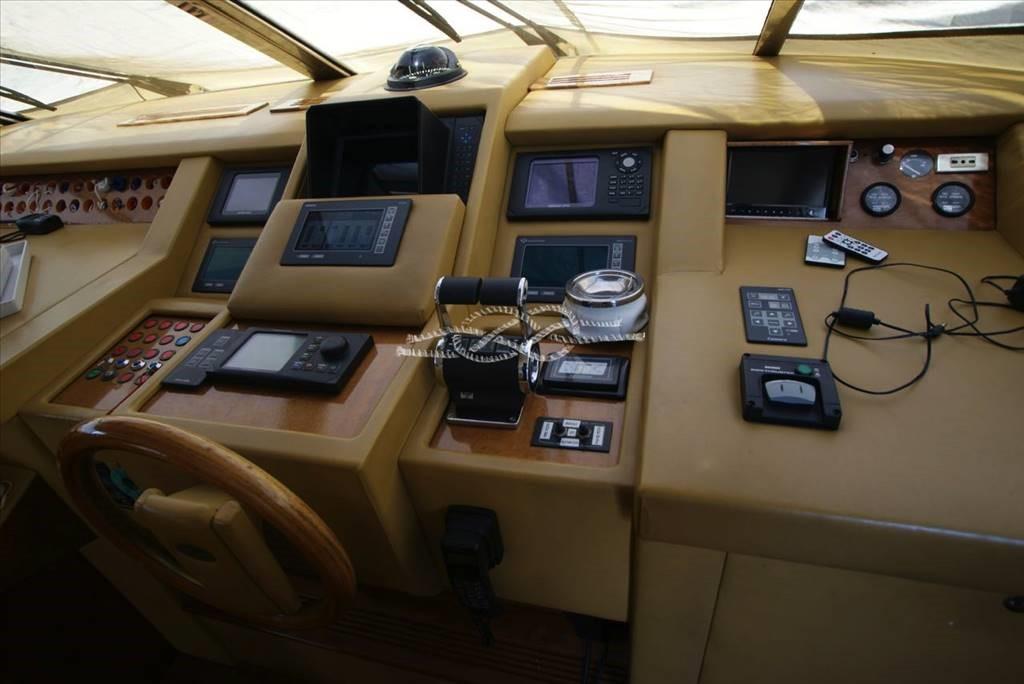 Troisième poste de contrôle à la poupe - propulseur d’avant Vetus - panneau électronique Boening pour vérifier les réservoirs d’eau, carburant, eau noire et eaux grises - caméra de vision de la salle des machines - climatisation - Distributeur d’eau Marinco - groupe électrogène Kohler 17 kW et Onan 12 kW - tender avec Suzuki 40 ch hors-bord - passerelle électrohydraulique Morsaverio - grue mouche Morsaverio - machine à laver - toilettes à eau douce Tecma - 1 réfrigérateur et 2 congélateurs dans la salle des machines - cuisine avec Réfrigérateur, four congélateur et fournecôte à gaz 4 brûleurs - placard avec double réfrigérateur/machine à glaçons, évier et plaque électrique à deux brûleurs en vol - TV - antenne SAT Seatel - décodeur SAT.