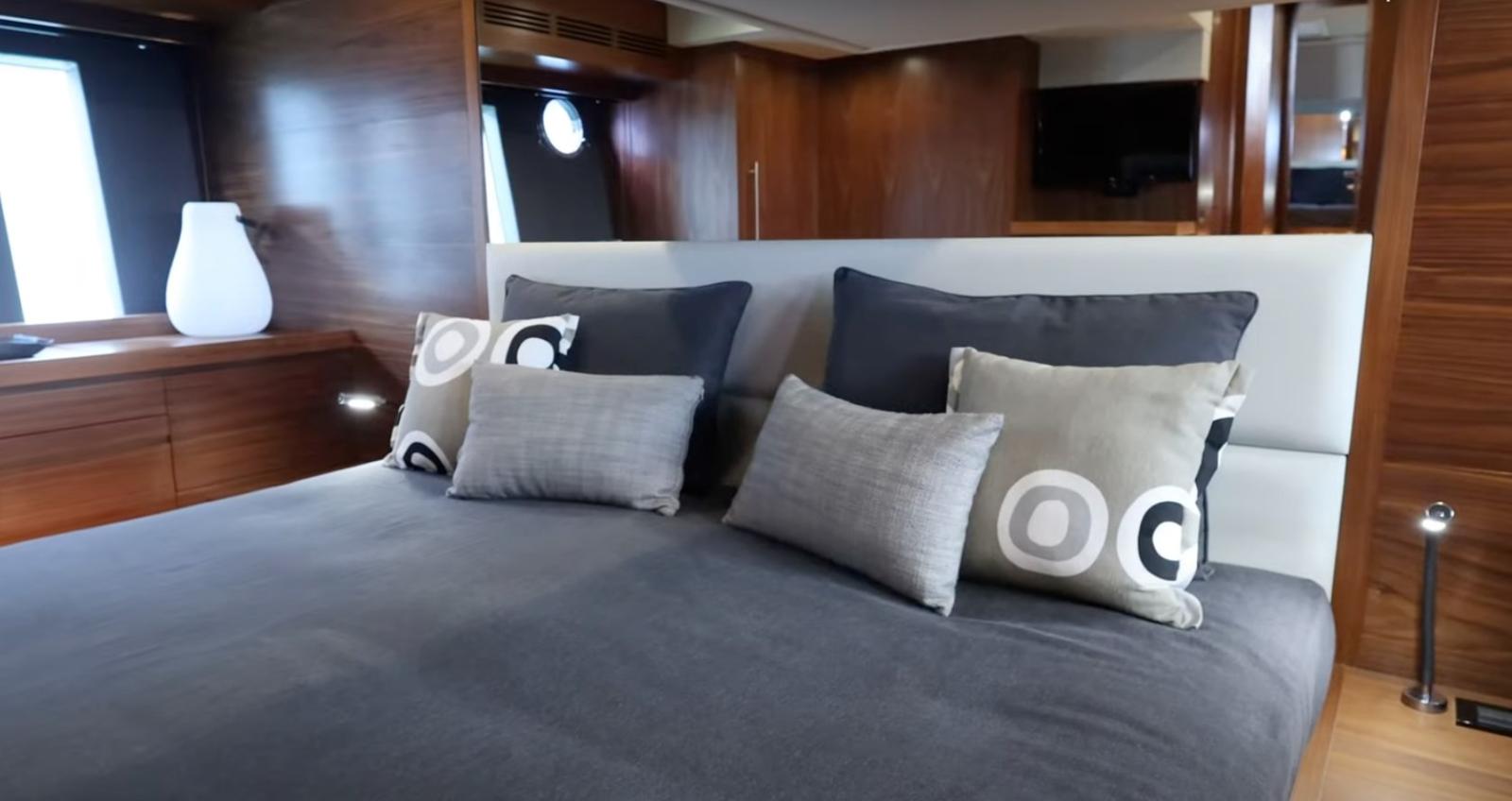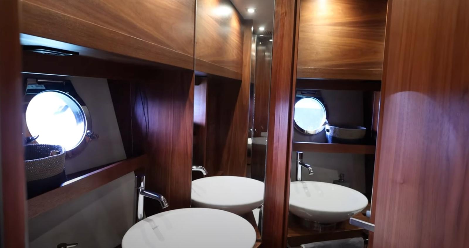 Cabine principale avec lit double et salle de bain - cabine VIP avec lit double et salle de bain - cabine d’amis avec deux lits plats et salle de bain.