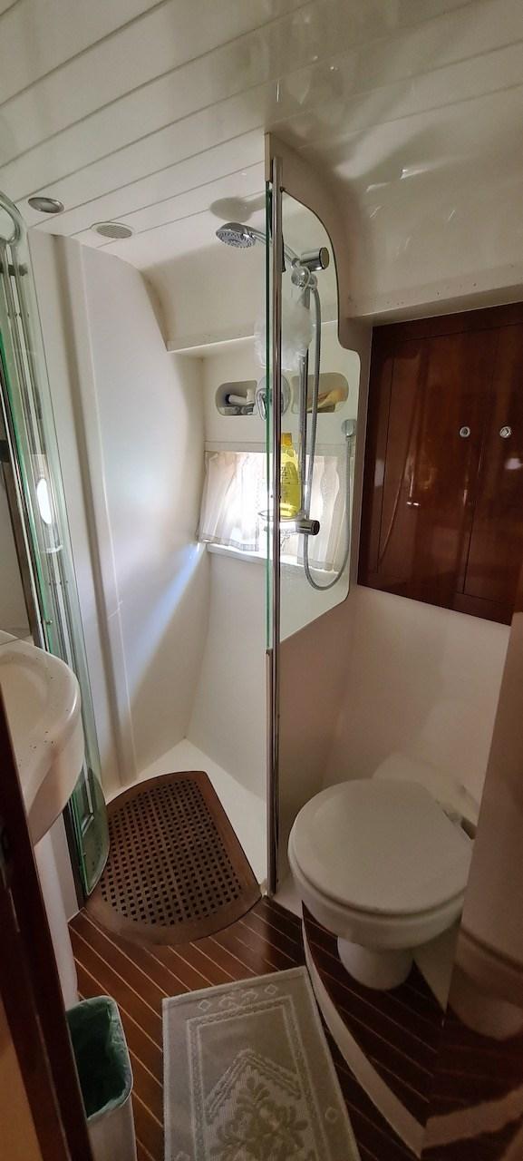 peinture de poupe - entretien extraordinaire de la passerelle avec remplacement des tuyaux hydrauliques, des câbles et révision des électrovannes - remplacement des feux de plongée à LED - entretien extraordinaire du générateur avec remplacement de la pompe à eau et du matériau insonorisant - traitement du teck - entretien du dessalinisateur avec remplacement du filtre - application d’un bimini en acier sur le pont avant (ouvert et fermé) avec auvent sumbrella - nouveau moteur hors-bord Selva 4t de 9,9 cv pour annexe.