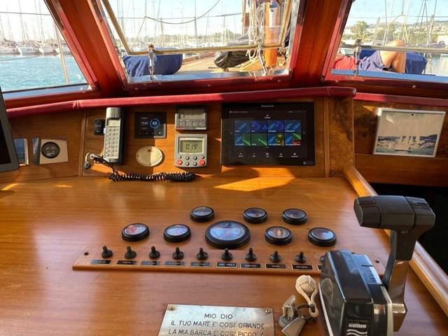Chantier naval : CIRO MASSA (Torre del Greco) Type : Motorsailer, ketch en bois personnalisé, Année : 1974, Marque du moteur : Caterpillar D9304T, hp 169 Heures moteur : 2,179