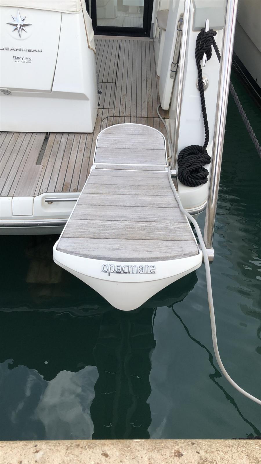 Alarme moteur, Alarme de pompe de cale, Alternateur, Eau sous pression, 5 Batteries, 2 Chargeur de batterie, 4 Câble d’alimentation à quai, Douche de cockpit, Flaps électriques, Extincteur(s) fixe(s), Indicateurs de flaps, Passerelle (Idraulica Opacmare, unico esemplare NC 11 in commercio), Plateforme arrière, 2 Pompe de cale automatique, 2 Pompe de cale électrique, Pompe de cale manuelle, Porte latérale, Cockpit en teck, Prise de quai, Onduleur, Guindeau électrique, Echelle de bain, Table pliante de salon, Corne.