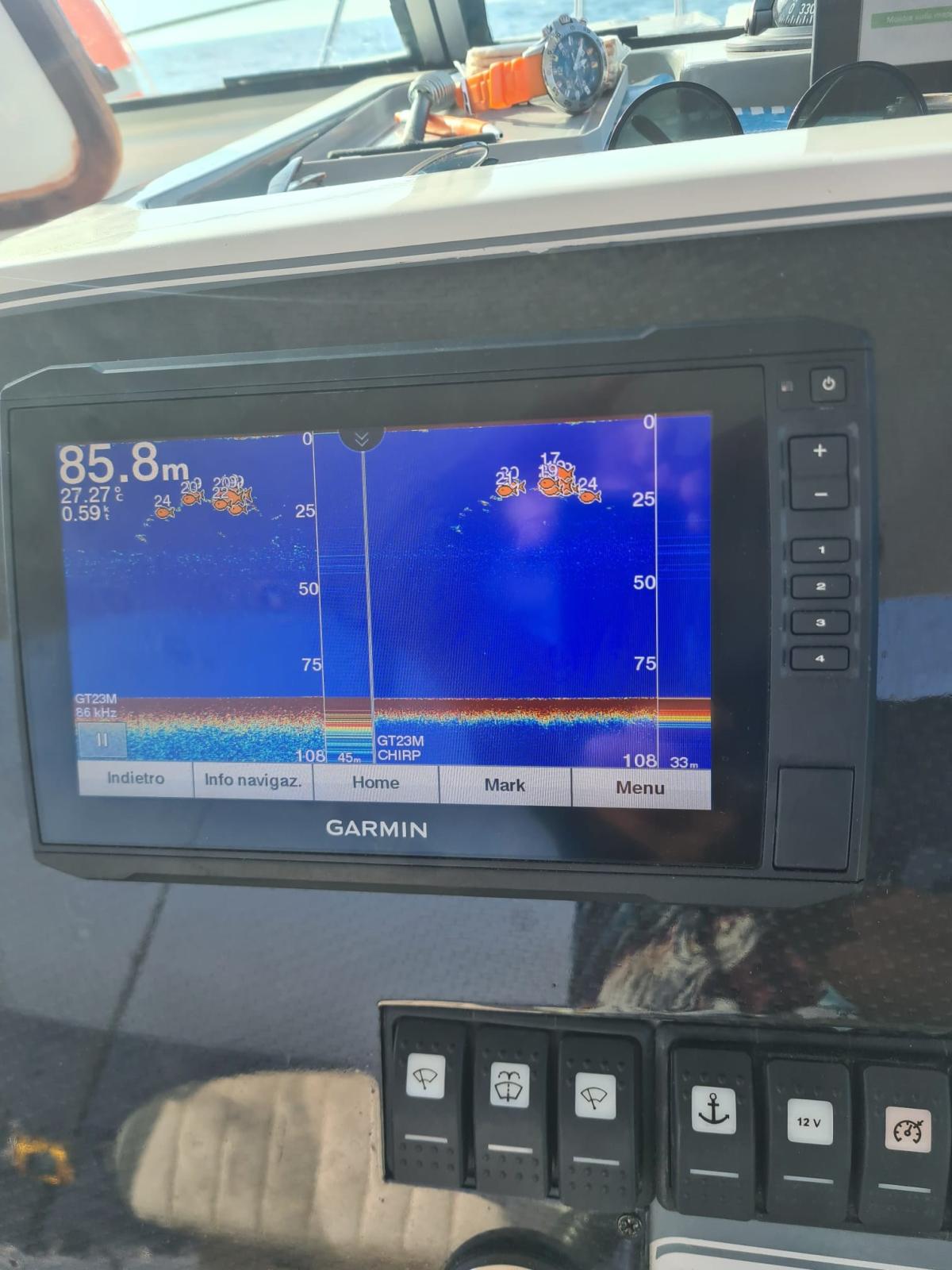 Sondeur pêche (CON SONDA PASSANTE 1000 W - 2023), Plotter GPS (GARMIN ECHOMAP UHD92 SV - 2023), Radio VHF (COBRA MARINE MRF77B).