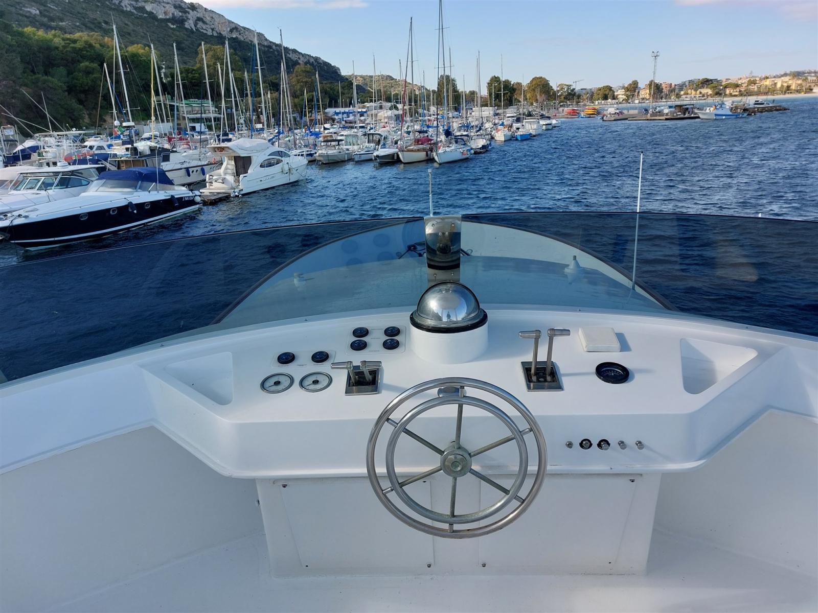 2 Alarme gaz, 2 Alarme moteur, 2 Alarme de pompe de cale, Eau sous pression, 2 Passavant en teck, Douche de cockpit, Double barre à roue, Phares fixes arrière, Extincteur(s) fixe(s), Lavage de chaine, Éclairage de courtoisie, Passerelle (Opac Mare), Plateforme arrière, Porte latérale, 2 Porte latérale, Cockpit en teck, Prise de quai, Connexion eau sous pression à quai, Guindeau électrique, Echelle de bain, table de cockpit, Corne, Winch électrique arrière, Winch électrique avant.