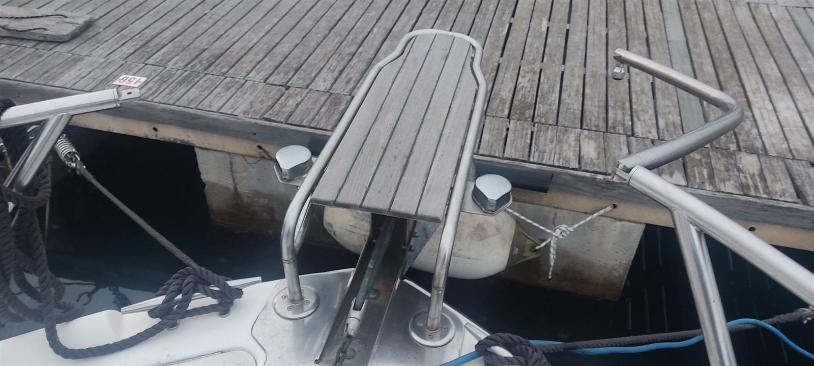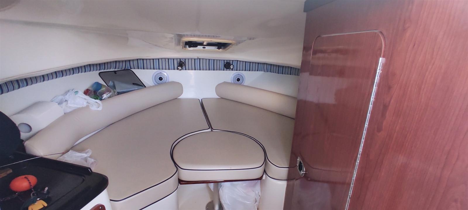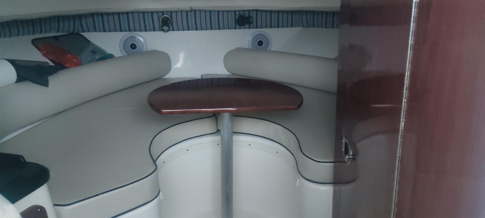 Alarme gaz, 2 Alarme moteur, Alarme de pompe de cale, Eau sous pression, 4 Batteries, Douche de cockpit, Phares fixes arrière, Flaps hydrauliques, Indicateurs de flaps, Lavabo dans le cockpit, Éclairage de courtoisie, Spots sous-marins (faro di profondità), Porte latérale, Prise de quai, Guindeau électrique, Echelle de bain, Table pliante de salon, Corne, T-Top, Winch électrique avant.
