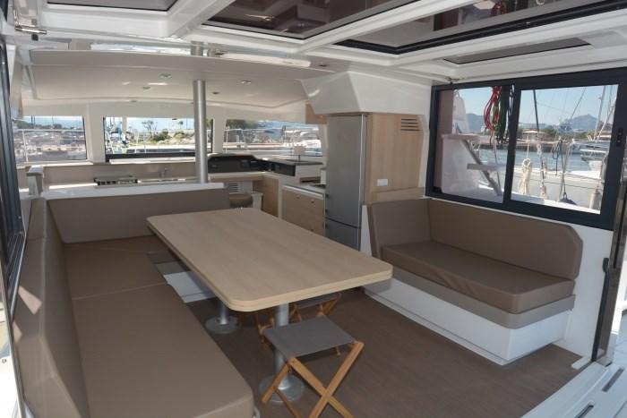 bateau charter ; prix + TVA ; Dessalinisateur ZP 200 lt/h ; 4 panneaux solaires ; cockpit avant avec immense bain de soleil transformable, table à manger avec trappe de service directement de la cuisine ; beaupré; treuil supplémentaire pour la gestion du code 0 ou gennaker ; grand-voile lattée ; 3 treuils dont 1 électrique ; bossoirs de poupe pour les annexes ; médiation de 5 % + TVA 22 % à la charge de l’acquéreur (la TVA est calculée sur le montant de la médiation)